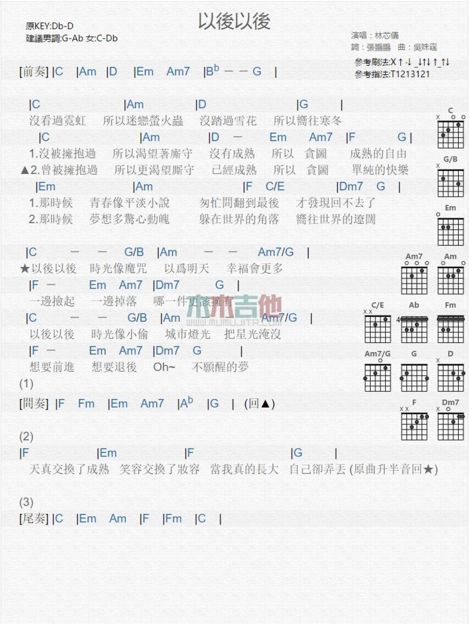 以后以后吉他谱 - 林芯仪 - C调吉他弹唱谱 - 和弦谱