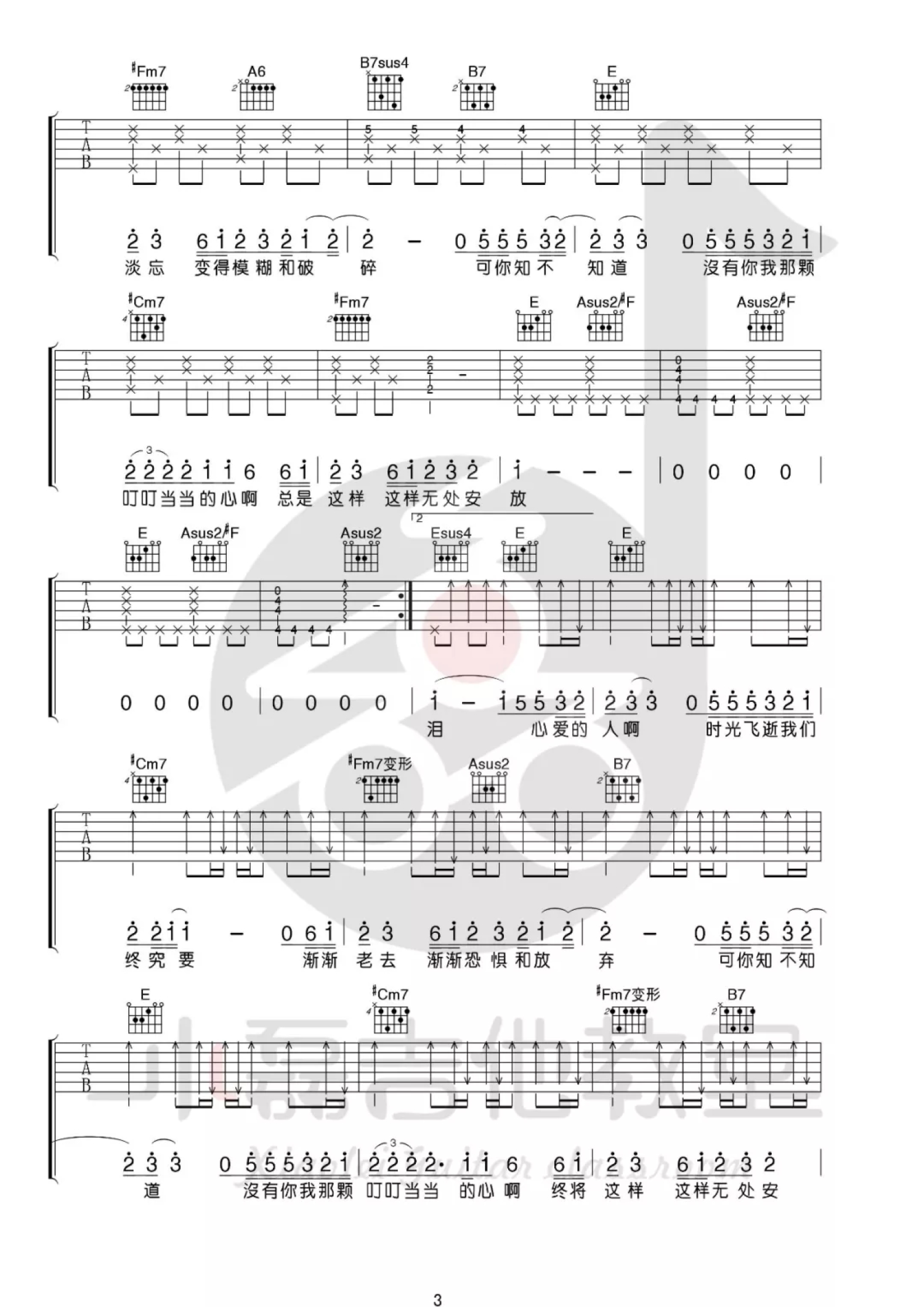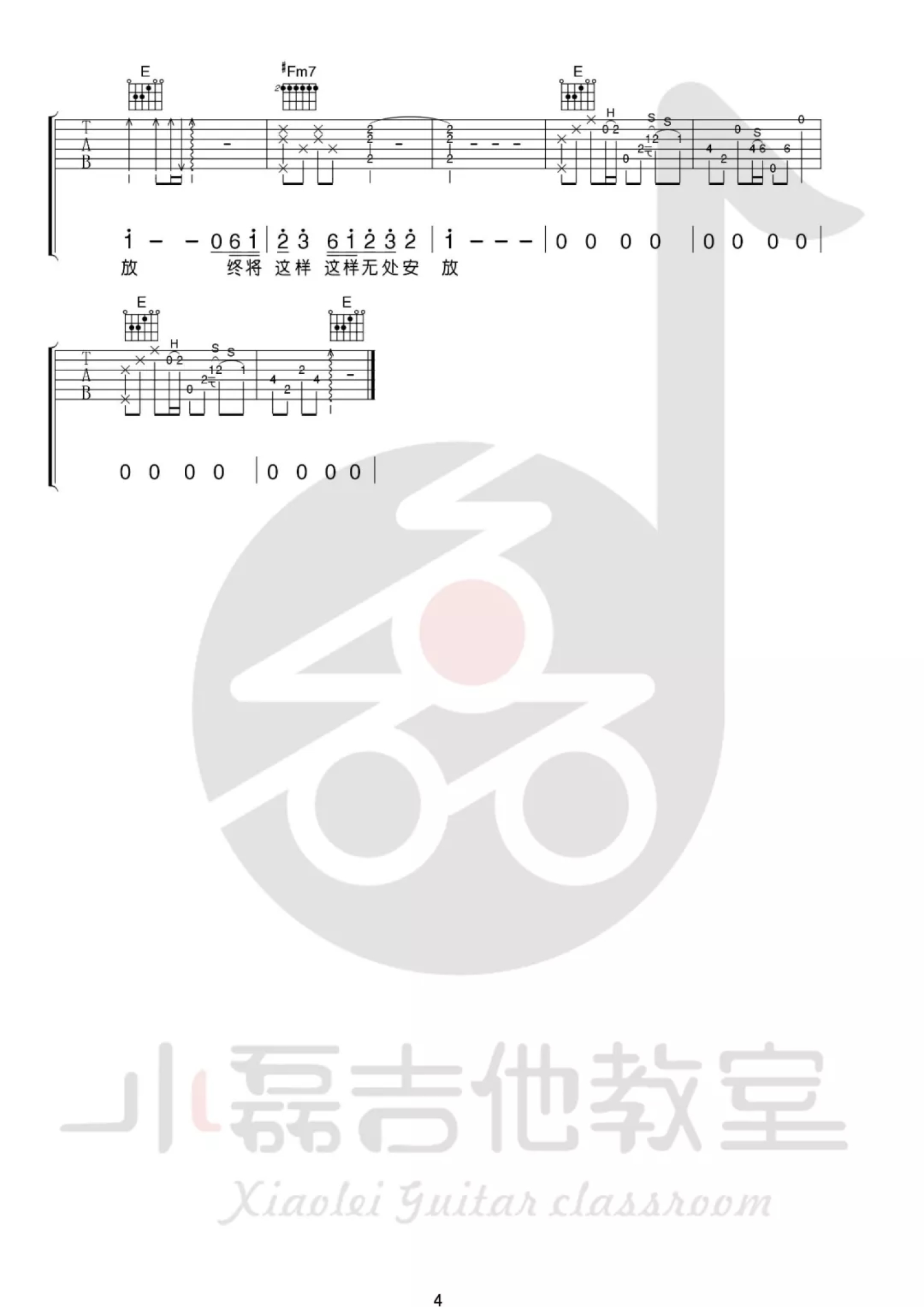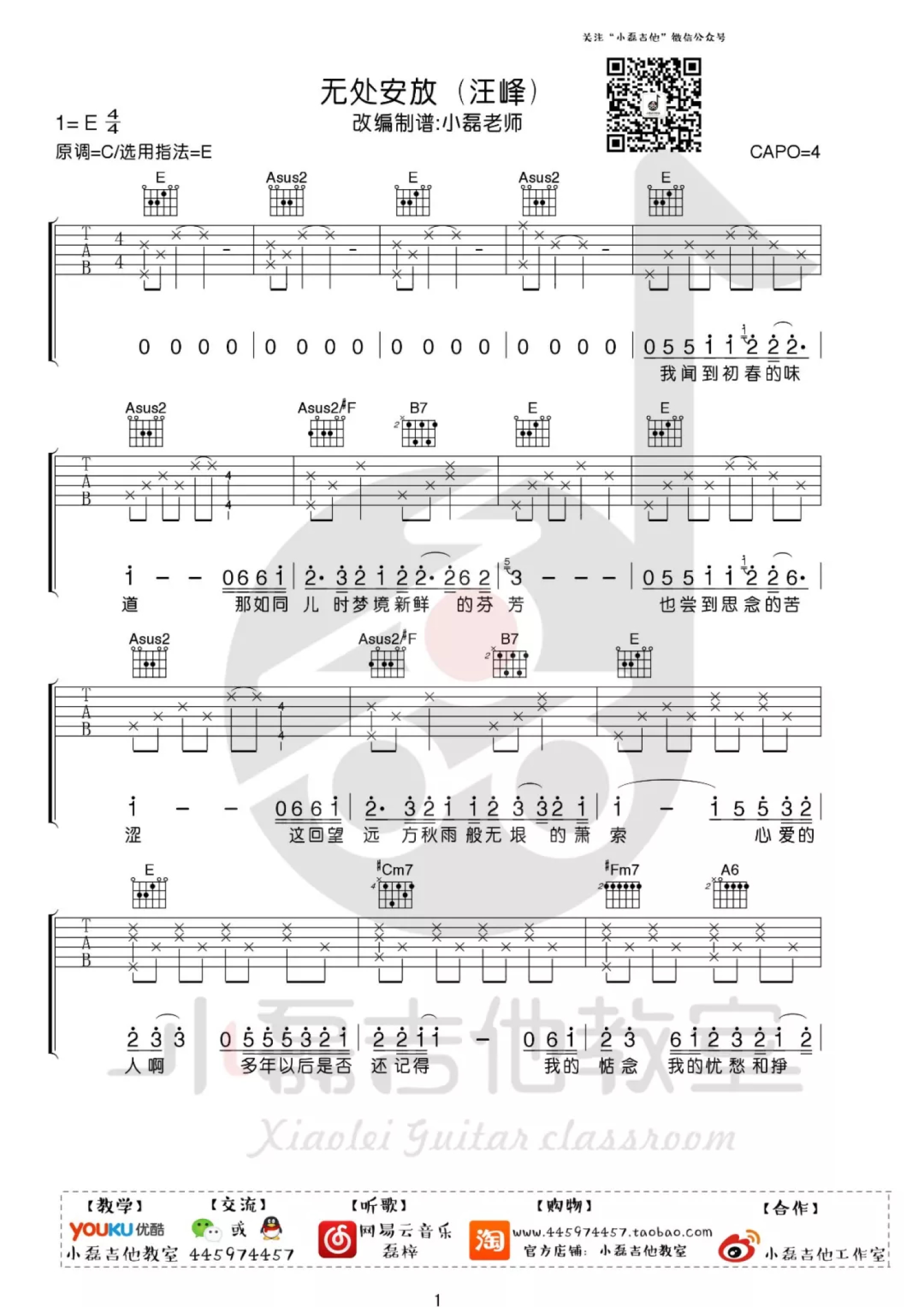 曲谱介绍: 小磊E调版 汪峰《无法安放》吉他弹唱六线谱