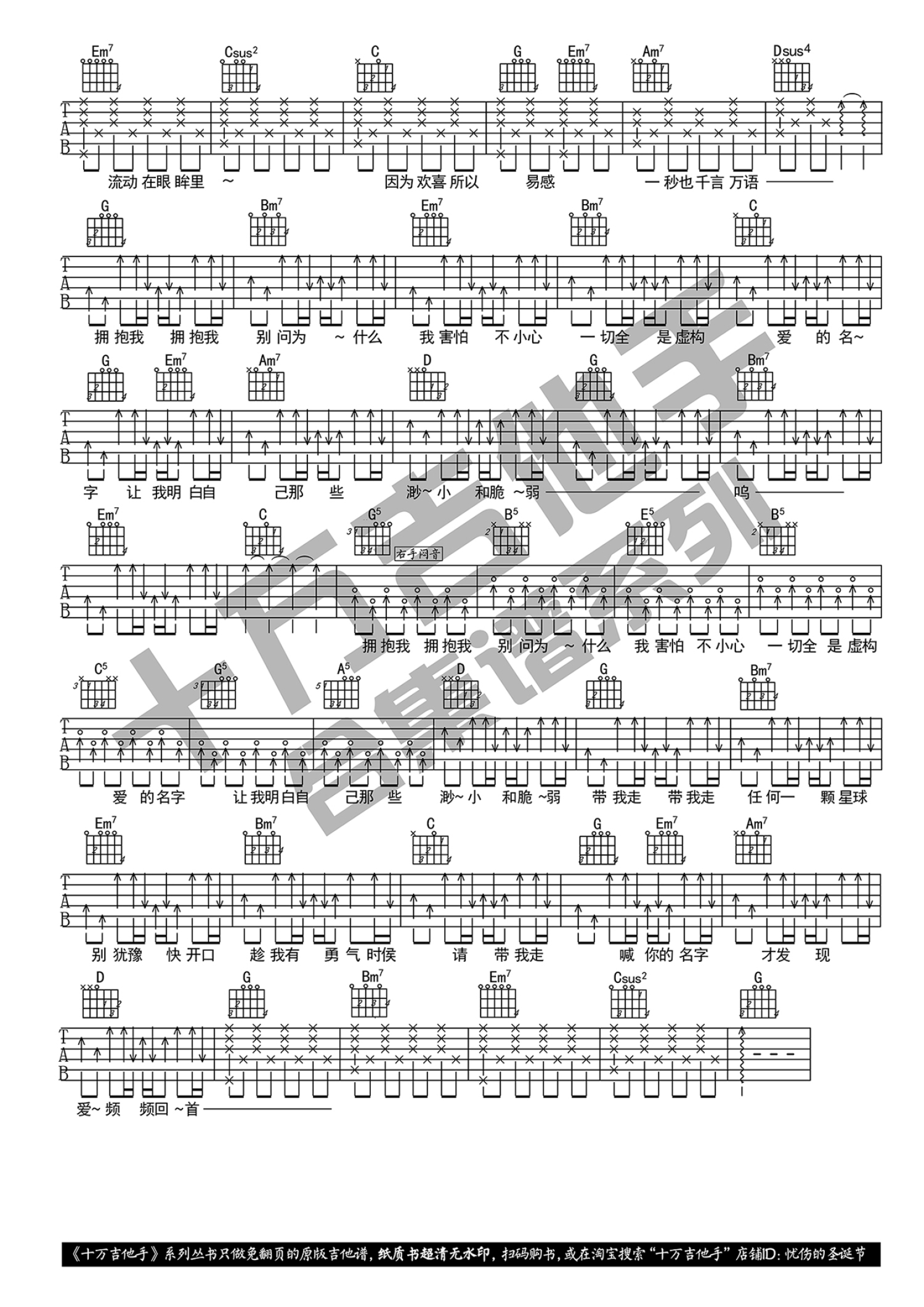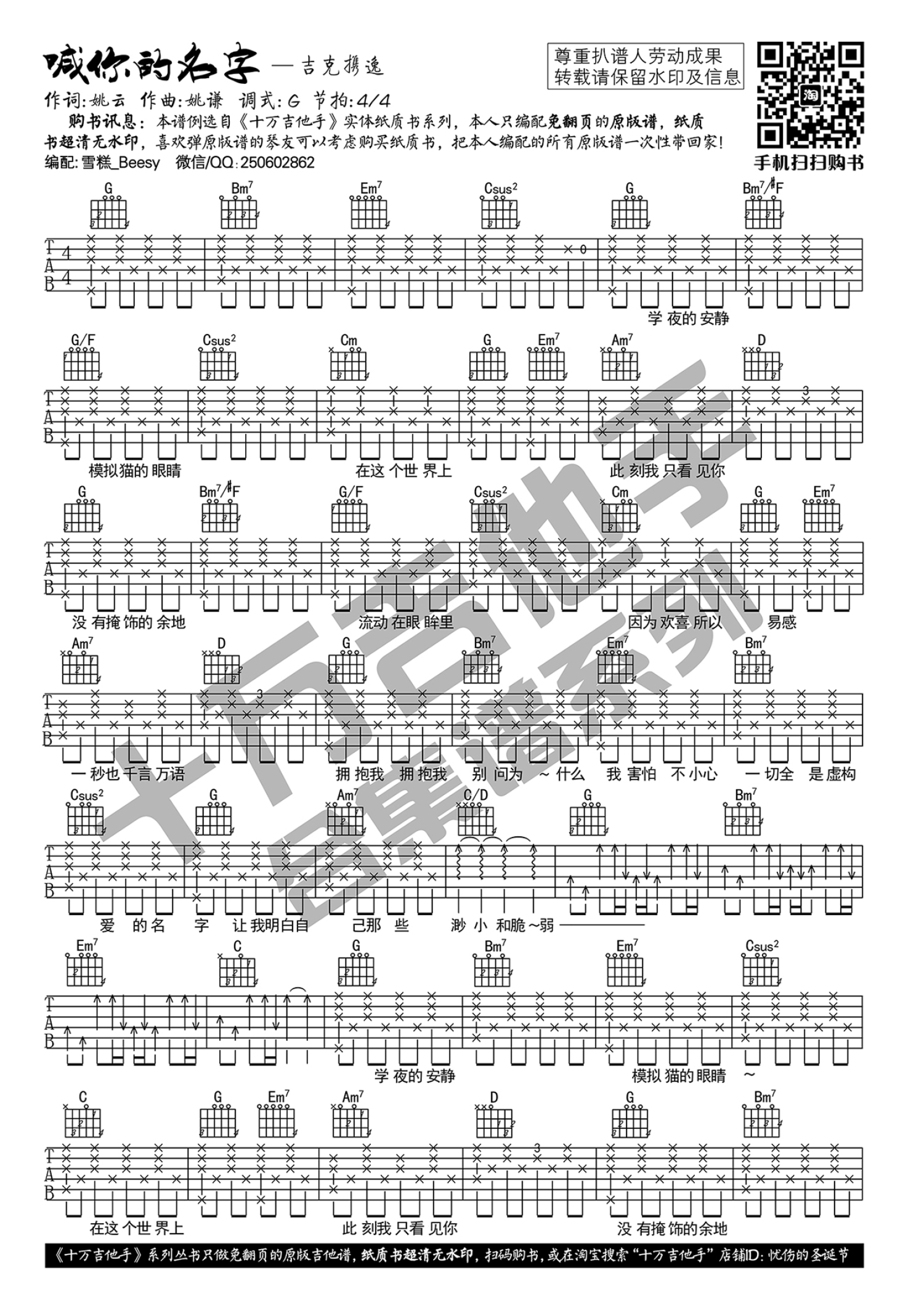 曲谱介绍: 十万G调版 吉克隽逸《喊你的名字》吉他弹唱六线谱