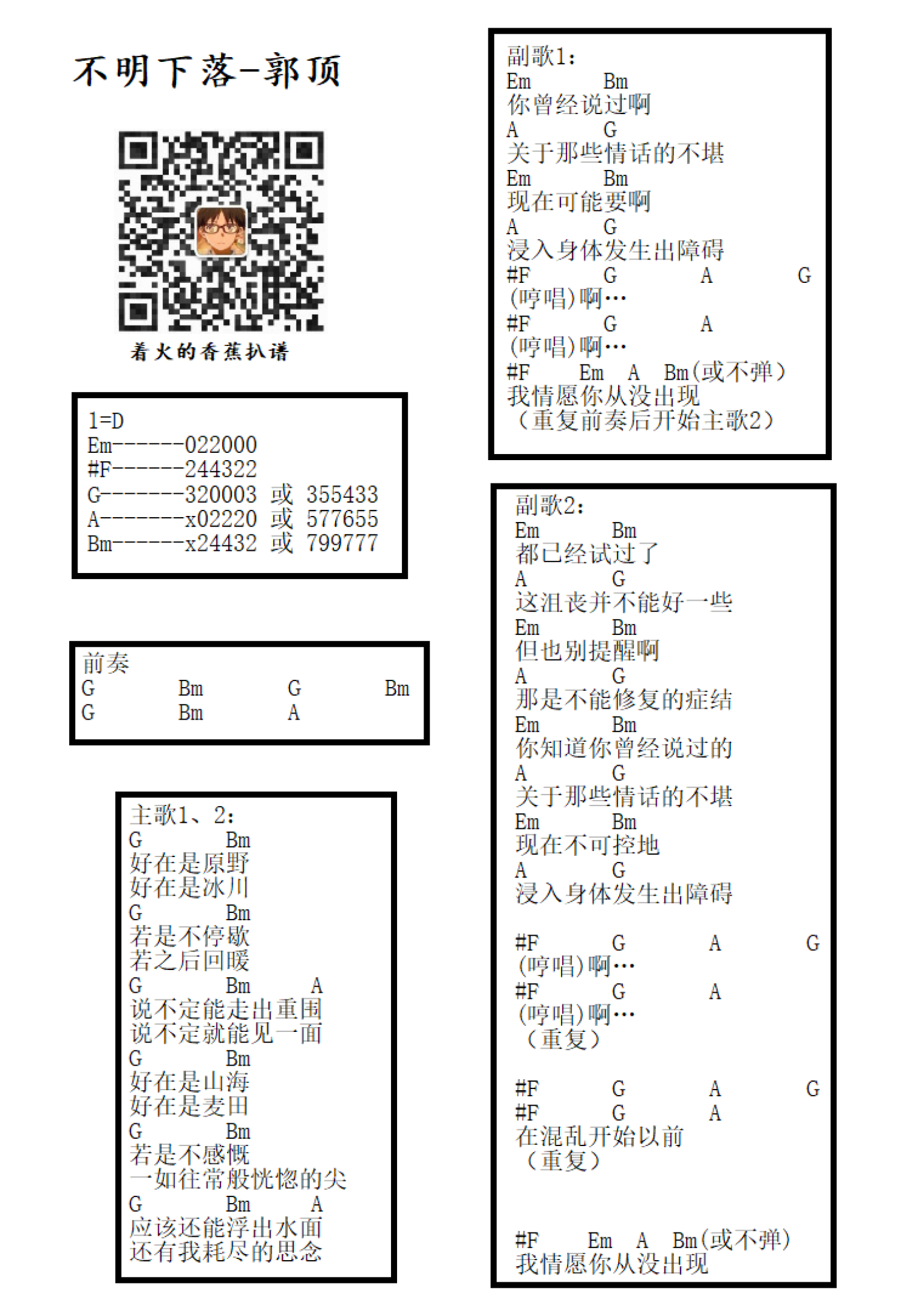 曲谱介绍: 郭顶《不明下落》吉他和弦弹唱谱