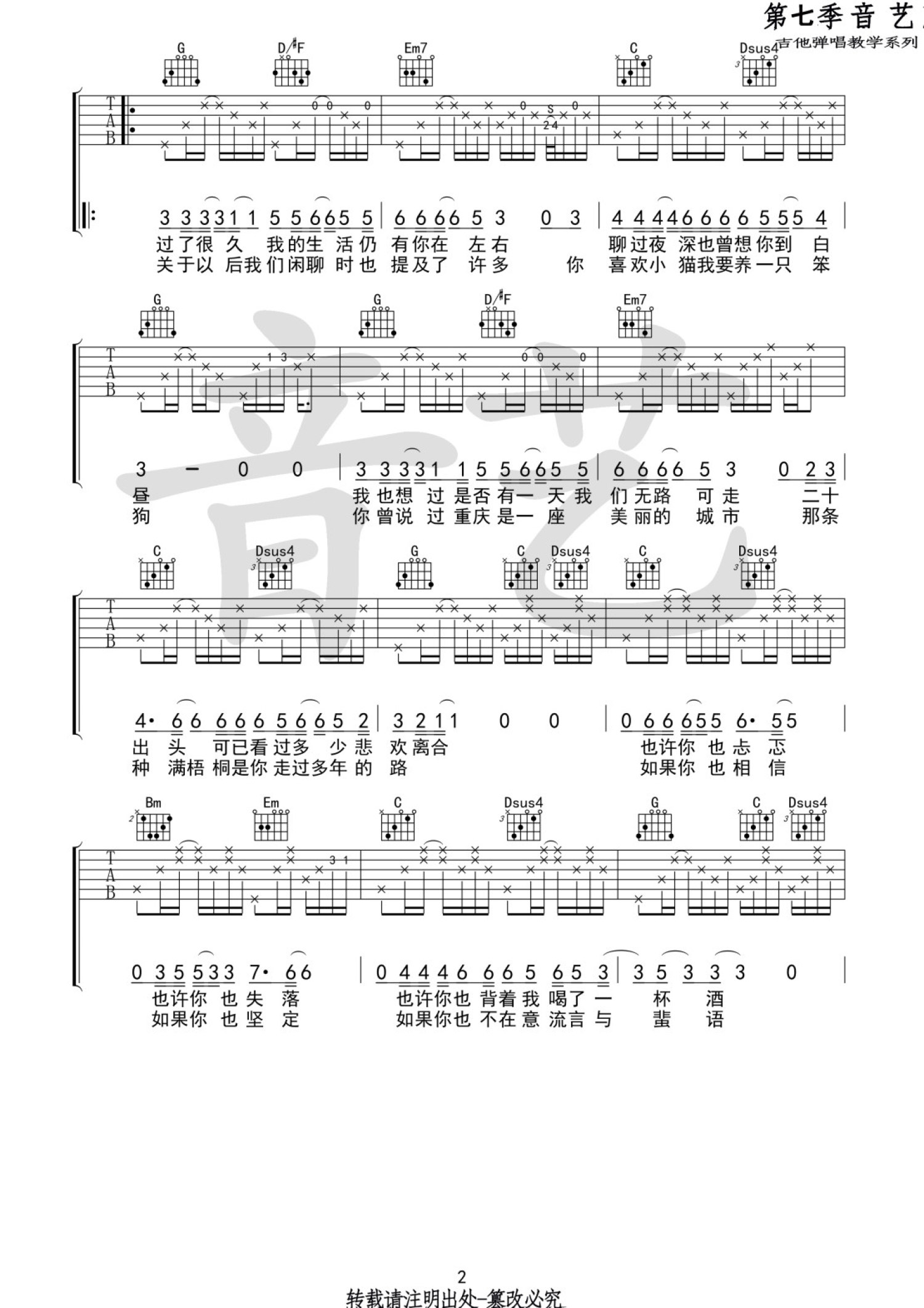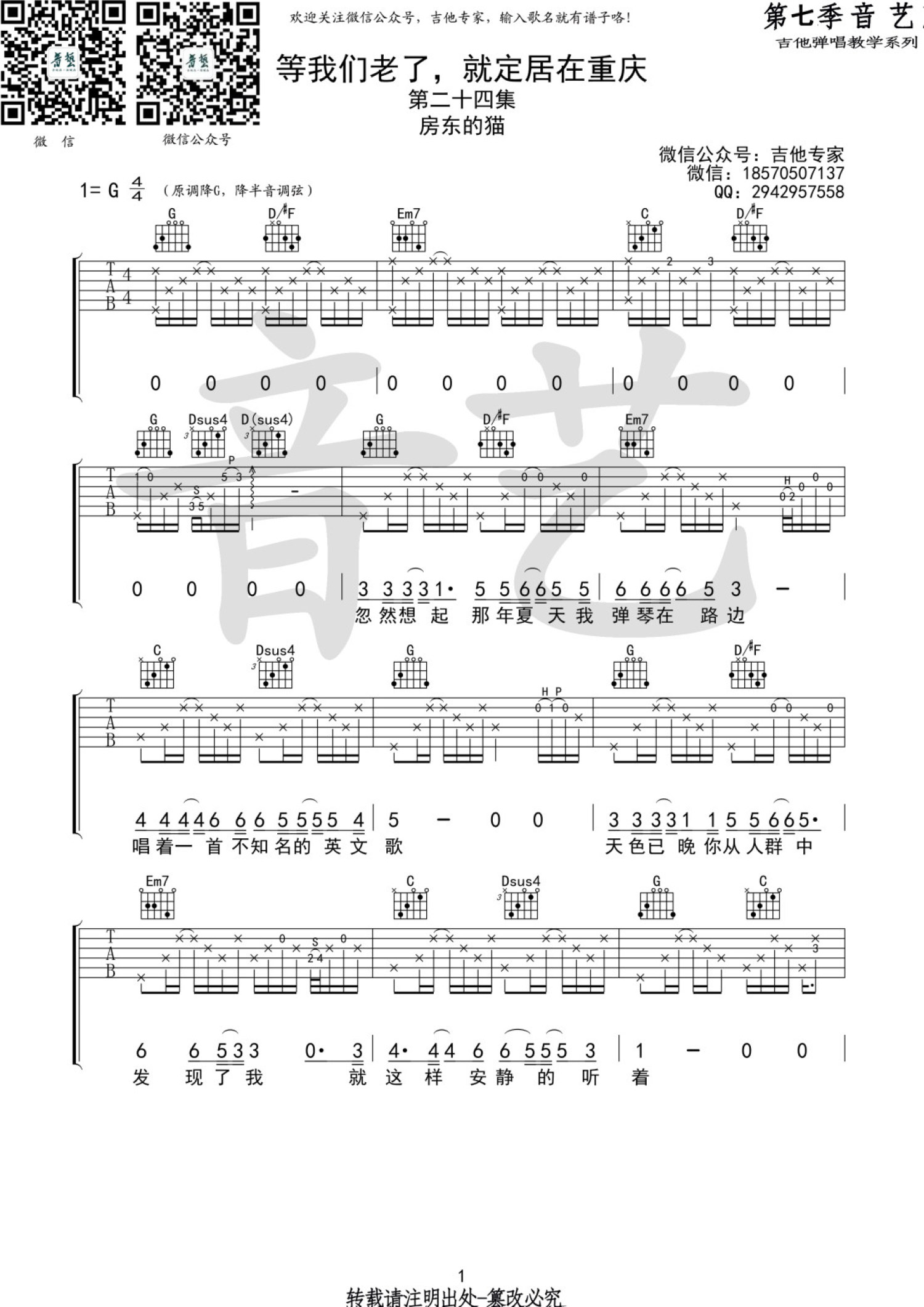 曲谱介绍: 《等我们老了,就定居在重庆》吉他弹唱六线谱