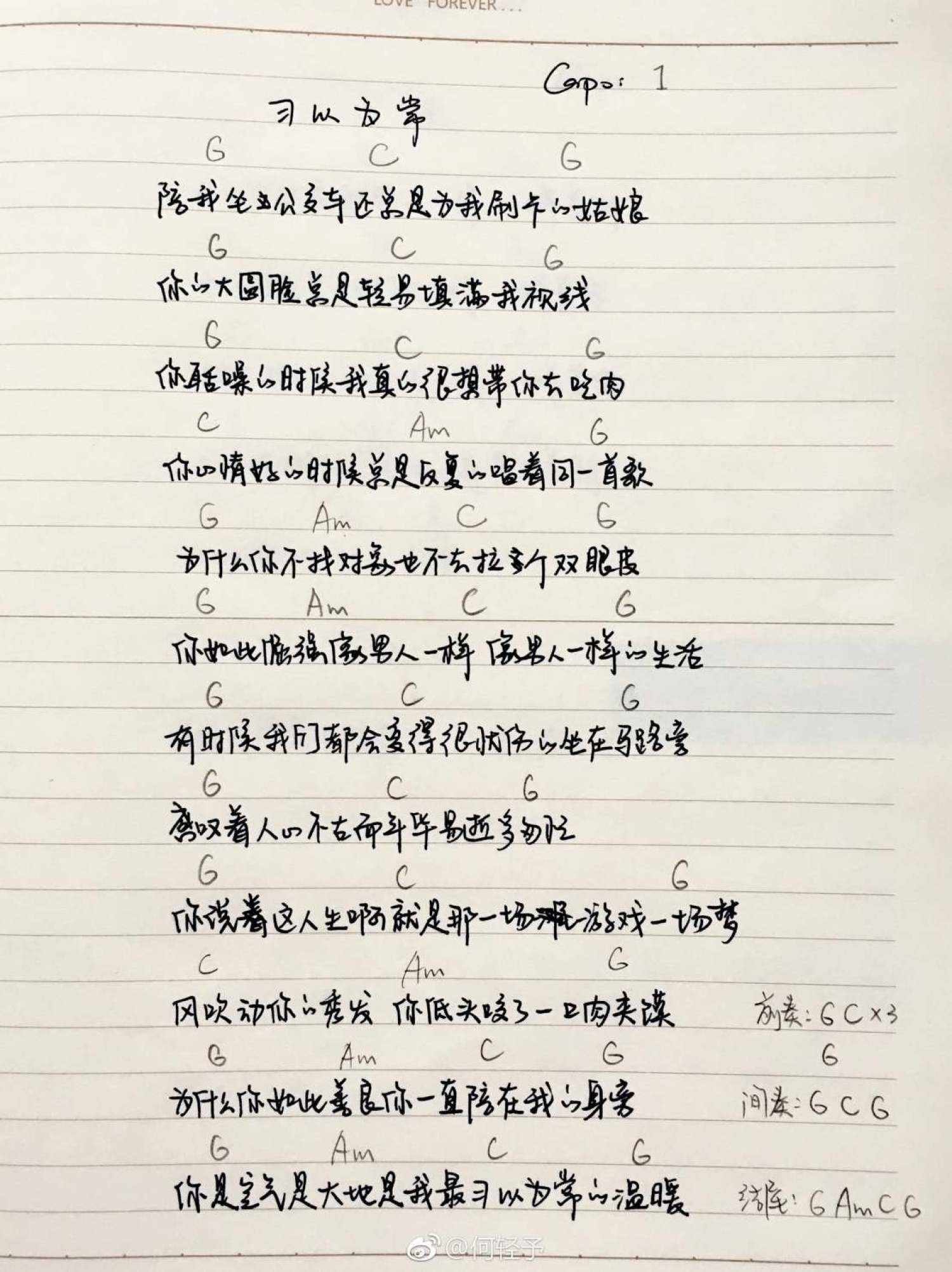 曲谱介绍: 花粥《习以为常》吉他和弦弹唱谱