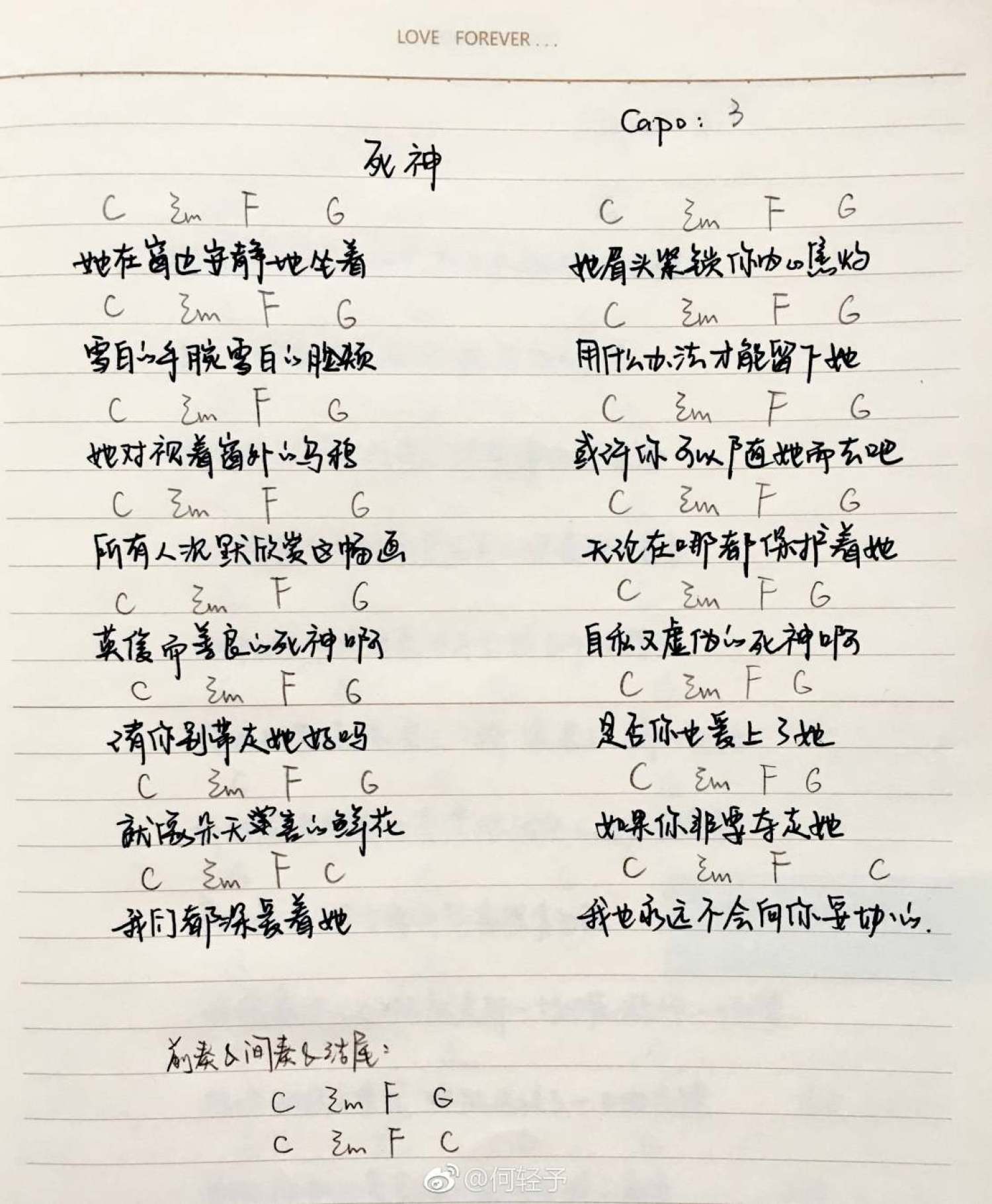 曲谱介绍: 花粥《死神》吉他和弦弹唱谱