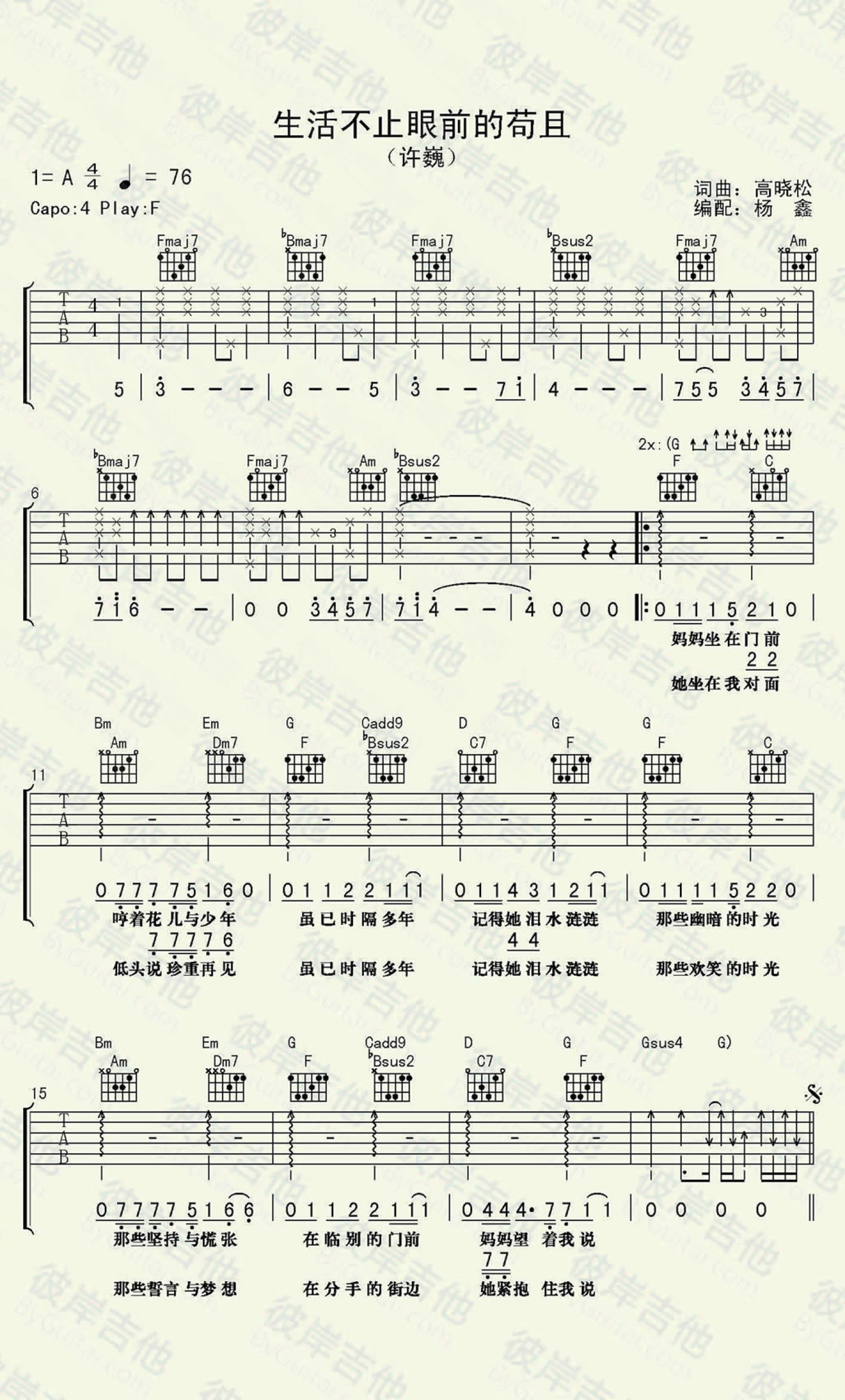 生活不止眼前的苟且吉他谱 - 许巍 - F调吉他弹唱谱
