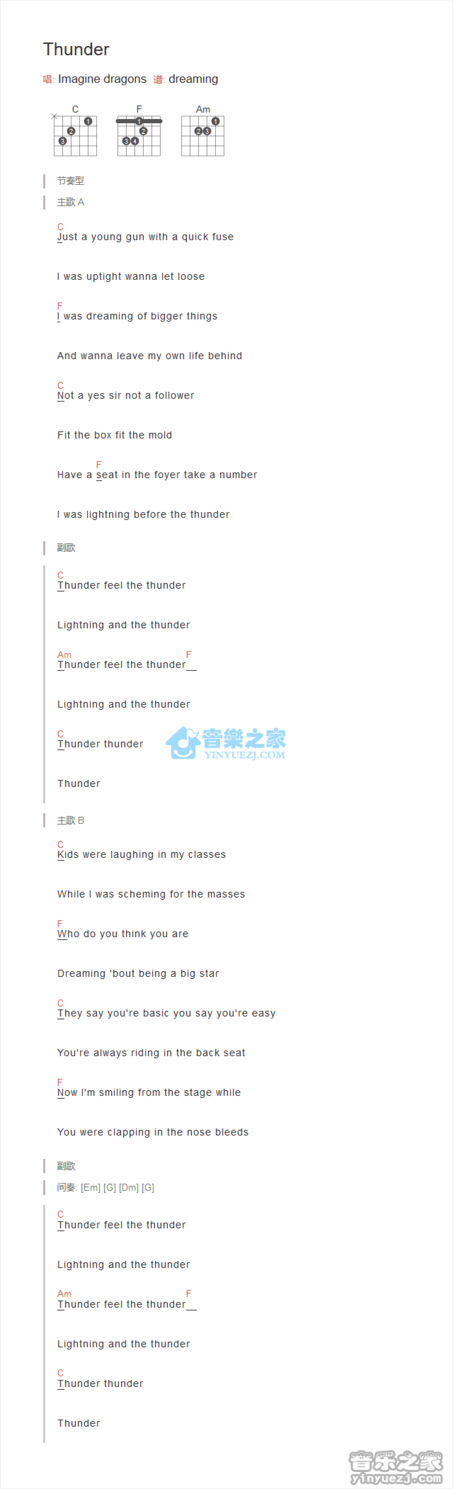 曲谱介绍: 《Thunder》吉他和弦弹唱谱