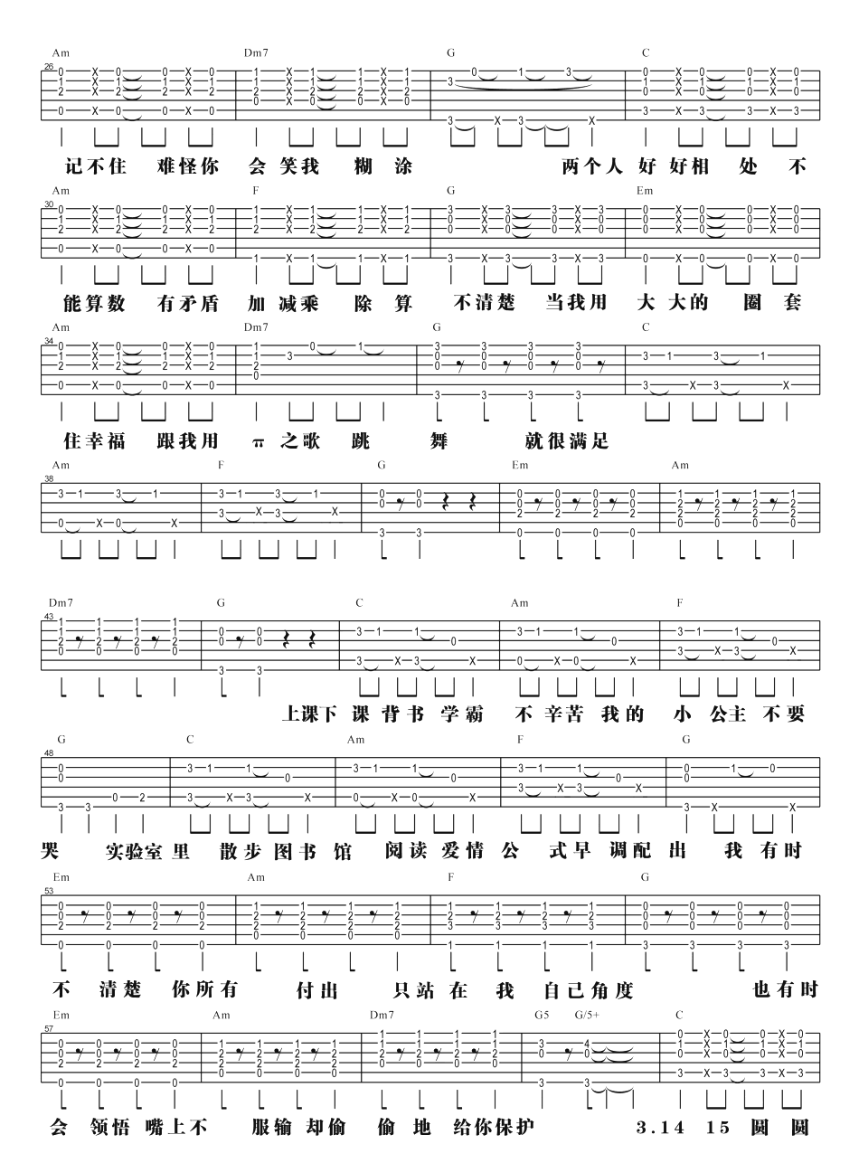 当前位置:琴谱网>吉他弹唱>π之歌