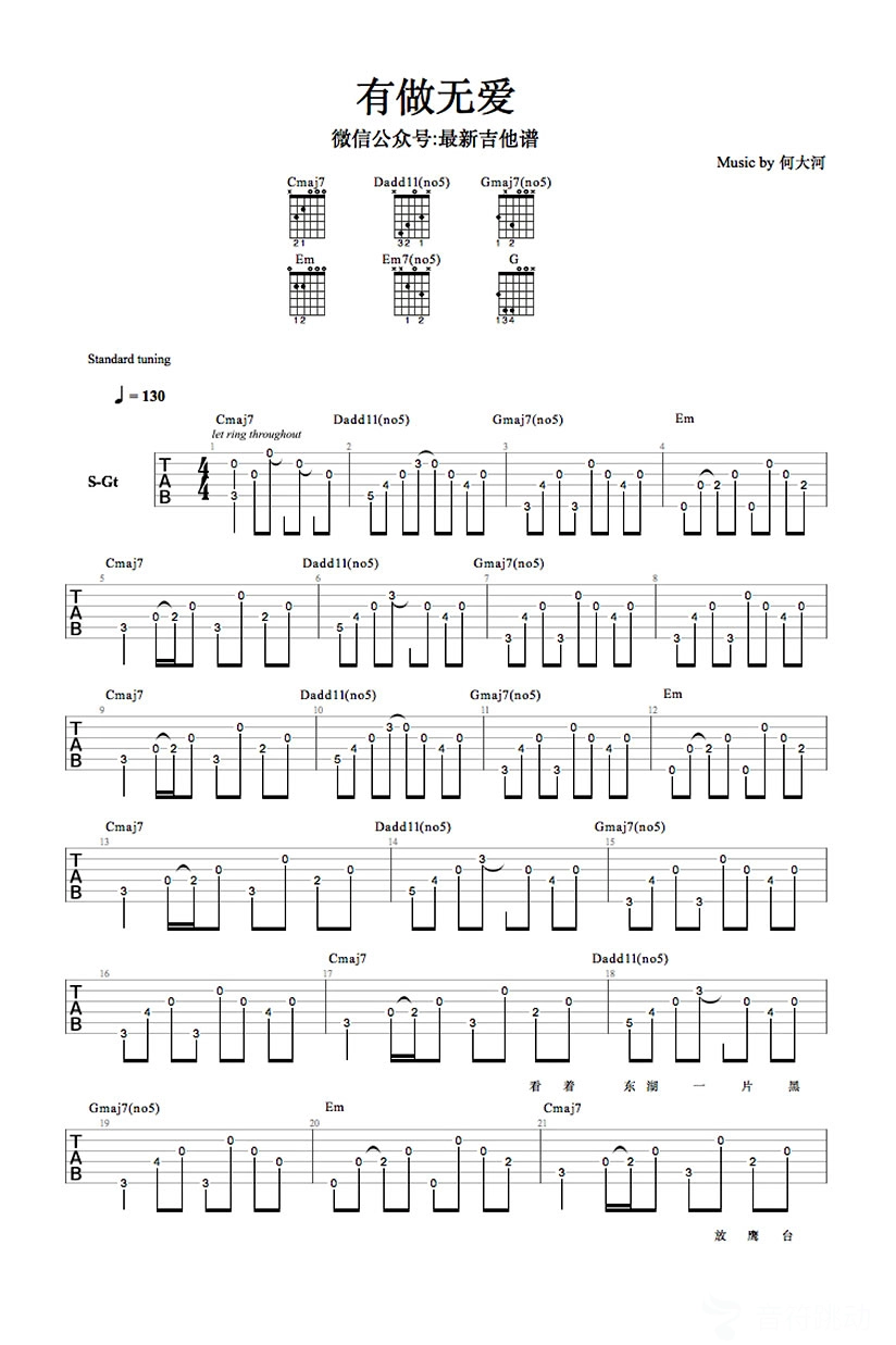 有做无爱吉他谱 - 何大河 - 吉他独奏谱