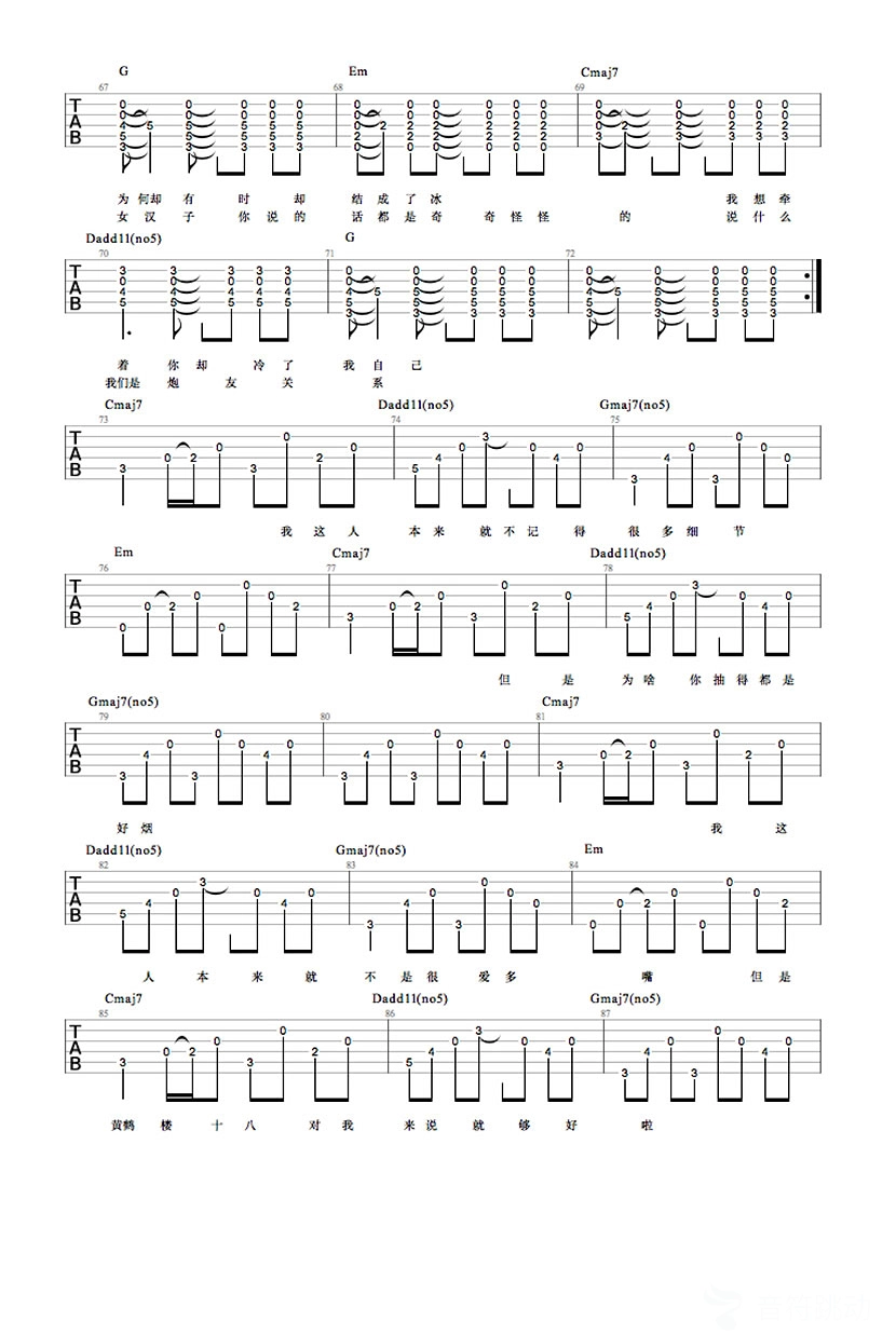 曲谱介绍: 何大河有做无爱吉他谱,你是水一般的女子,为何却有时却结成了冰,我想牵着你却冷了自己。套索能网罗满山逃逸的野马,但没有东西,就算咒语也不能追回那野了的不再相爱的情人的心。何大河要一把火烧光四季的花,一首《猪老三》单刀直入杀的人心晃荡。他说他每一首歌都为一个姑娘,一首《有做无爱》他可能有一丝丝的怨念,怨轻叩的小窗不为他敞开,怨唱出的深情唤不来倾心。