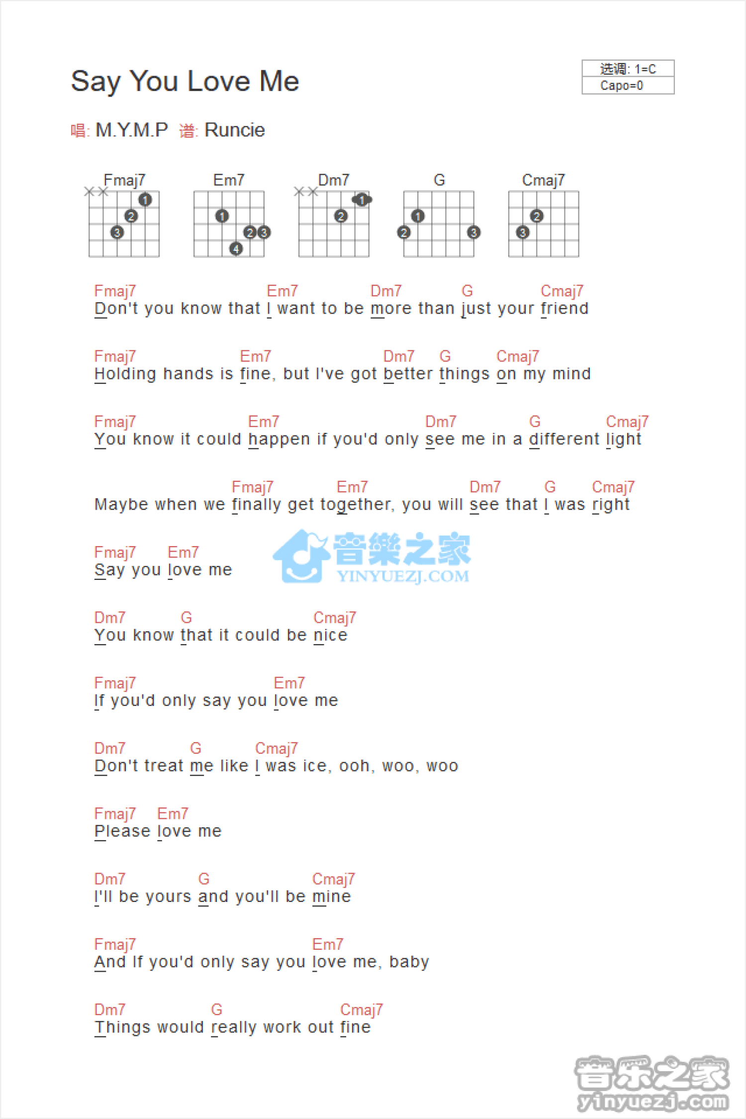Say you love me吉他谱 - MYMP - C调吉他弹唱谱 - 和弦谱