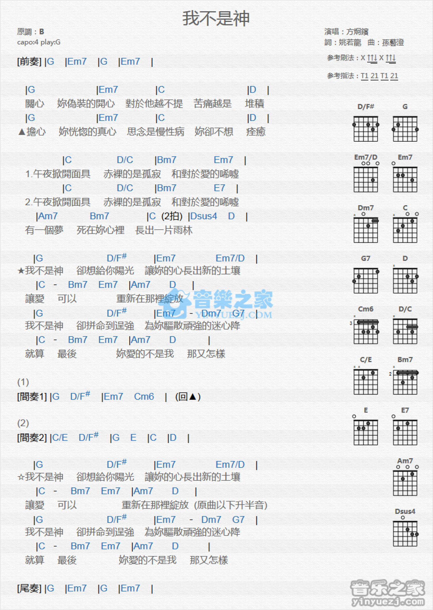 我不是神吉他谱 - 方烔宝 - G调吉他弹唱谱