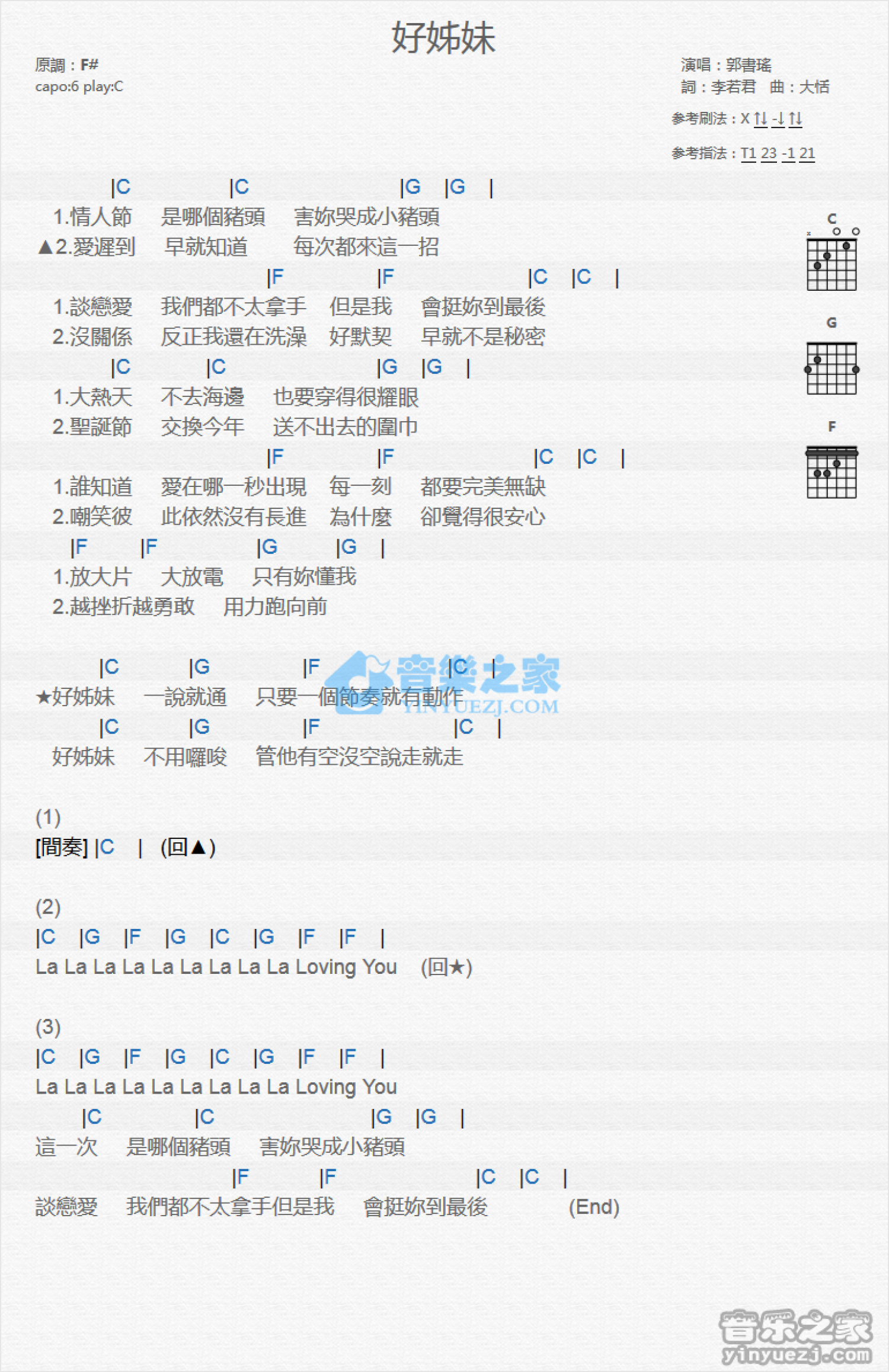 当前位置:琴谱网>吉他弹唱>好姊妹
