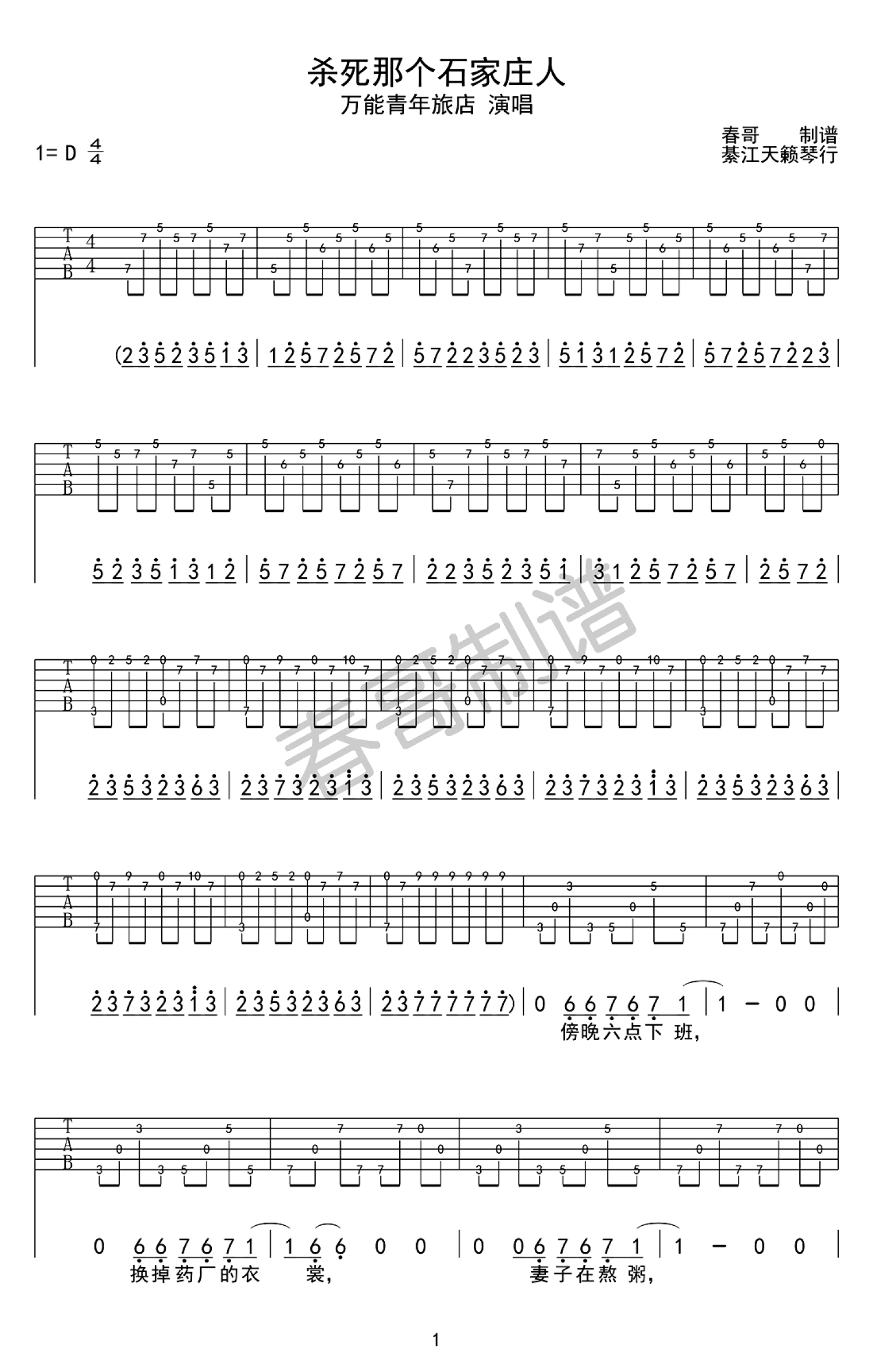 曲谱介绍: 万能青年旅店杀死那个石家庄人吉他谱,万青的代表作品,诉说了一个时代变迁的心酸,摇滚风的民谣,民谣风的杂文,杂文风的摇滚。典型的听一遍两遍无感,听十遍左右高潮的神作。听现场版可死而无憾。因为一首《杀死那个石家庄人》喜欢上了万青。万青的音乐很神奇,最开始总是那么平淡无奇,但是却能在某一时刻撞击你的内心。在歌里,每当号声响起总会给人一种希望的曙光就在眼前的感觉。