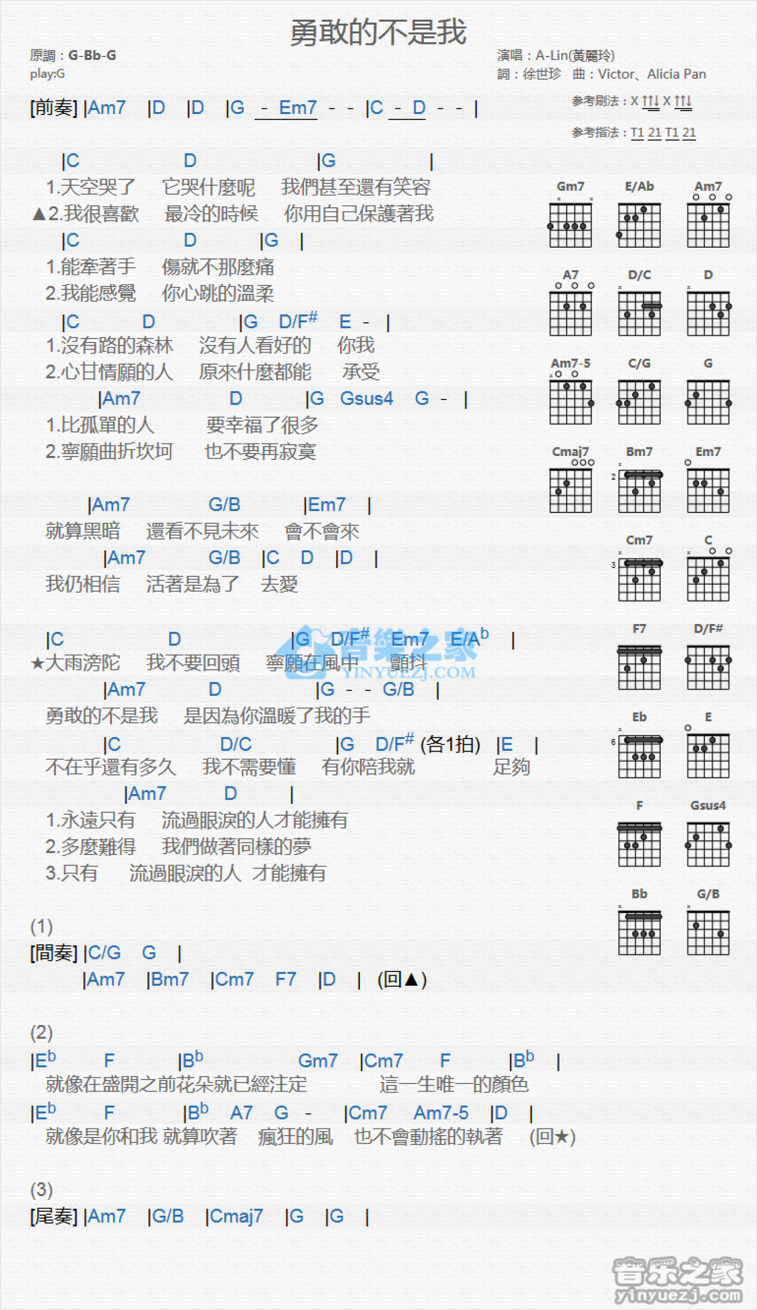 勇敢的不是我吉他谱 - A-Lin - G调吉他弹唱谱 - 和弦谱