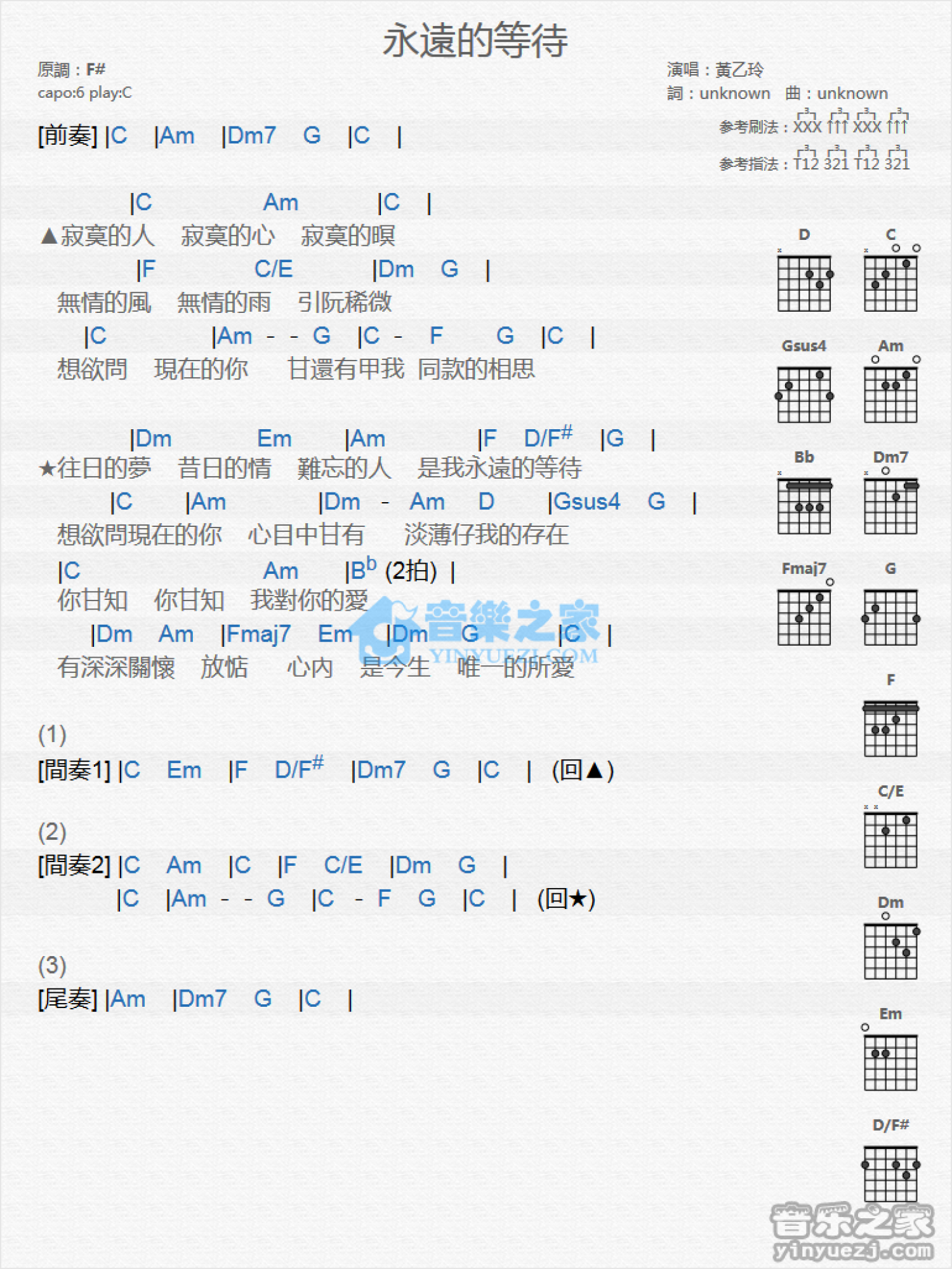永远的等待吉他谱 - 黄乙玲 - C调吉他弹唱谱 - 和弦谱