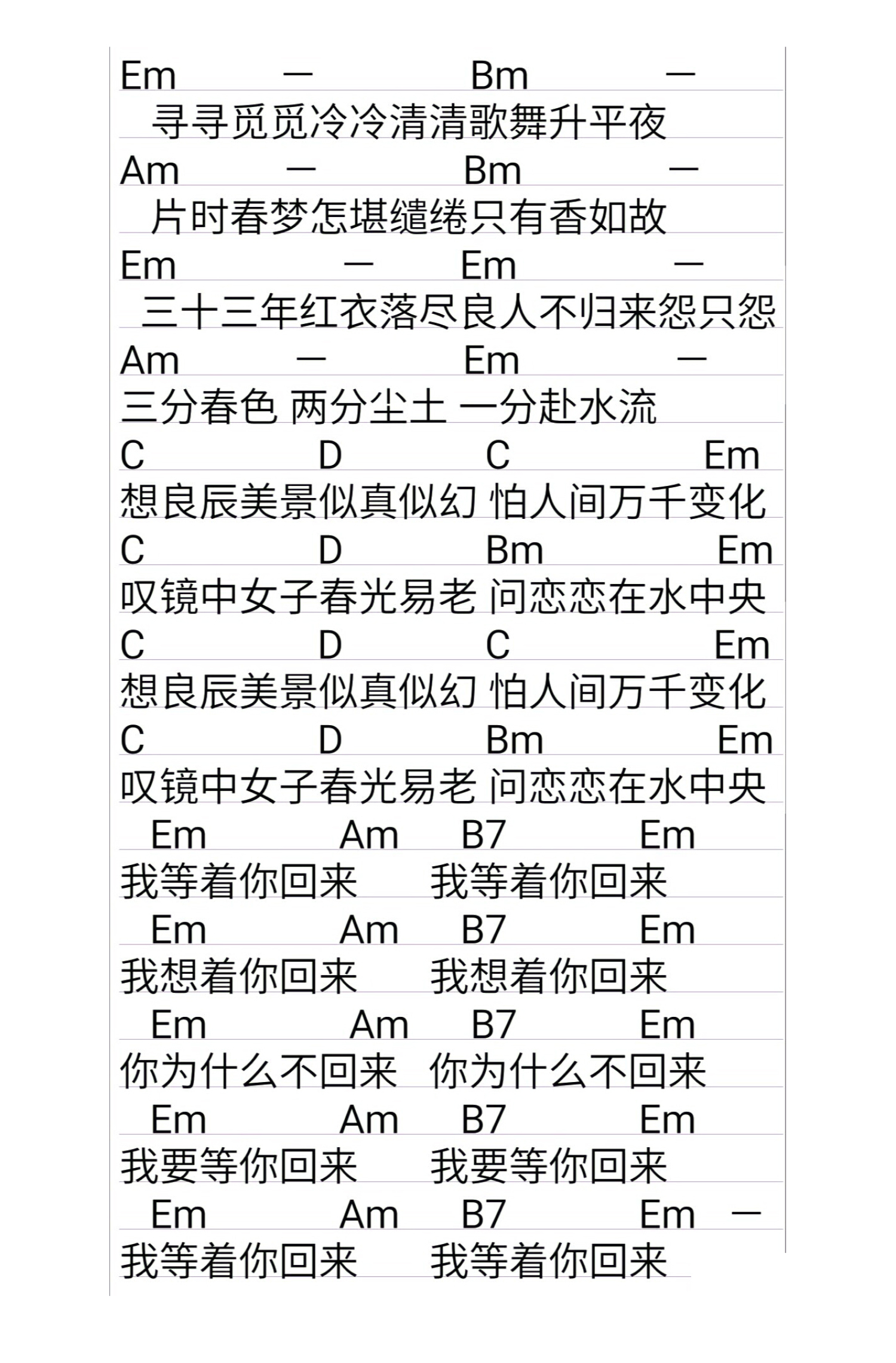 曲谱介绍: 蒋明《桂花巷》吉他和弦弹唱谱