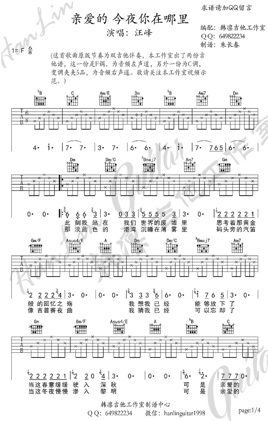 吉他弹唱F调来源:韩凛吉他工作室--朱长春694 浏览2018-03-19 13:34发布图谱共4页