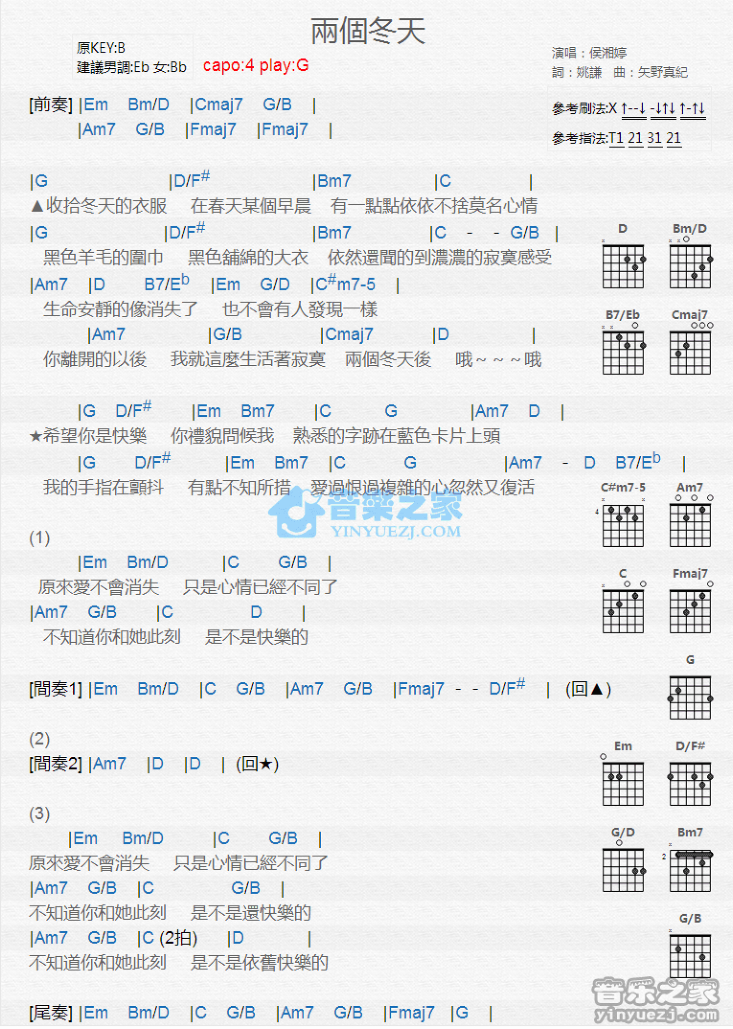 两个冬天吉他谱 - 侯湘婷 - G调吉他弹唱谱 - 和弦谱