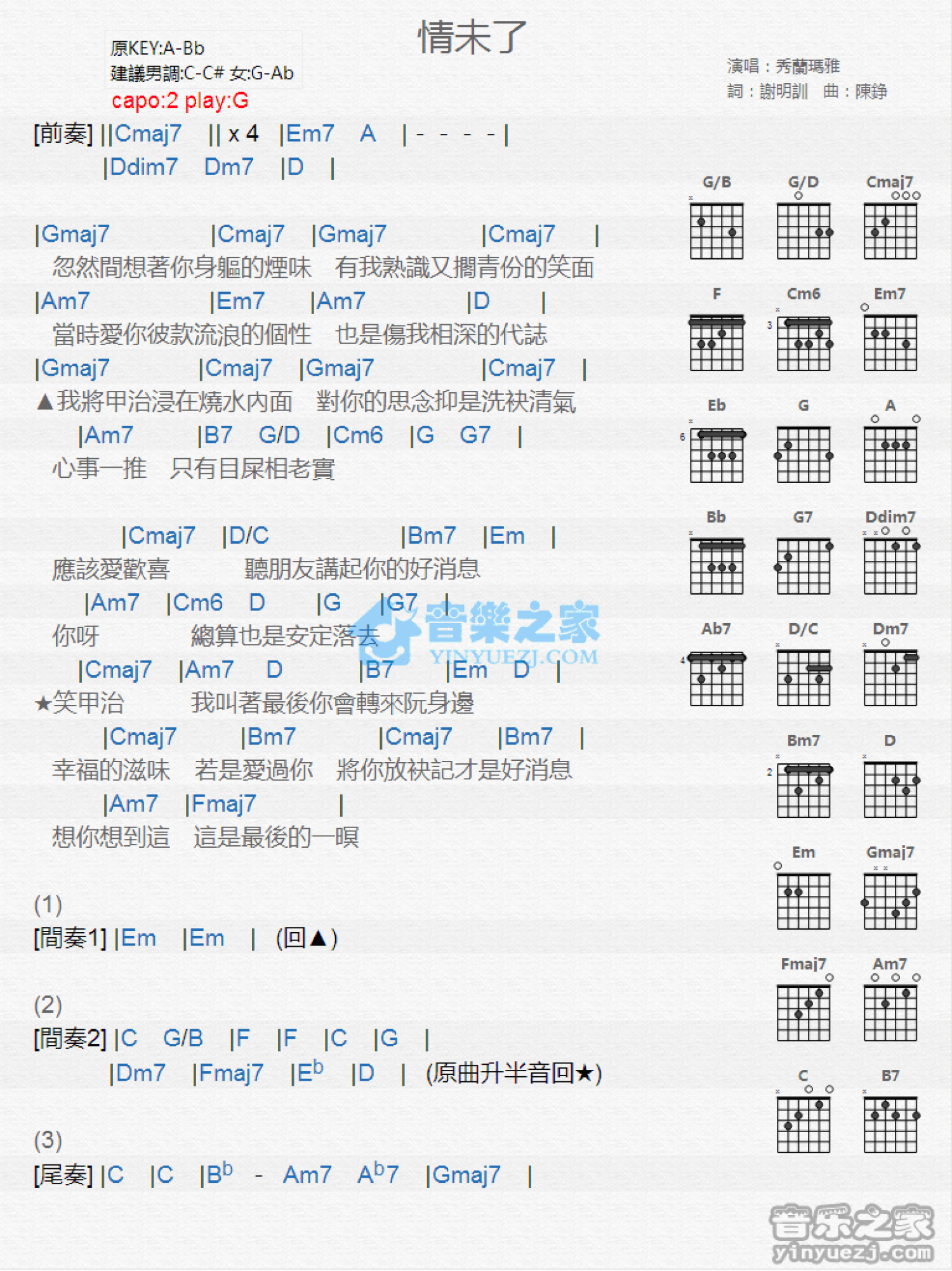 情未了吉他谱 - 秀兰玛雅 - G调吉他弹唱谱 - 和弦谱