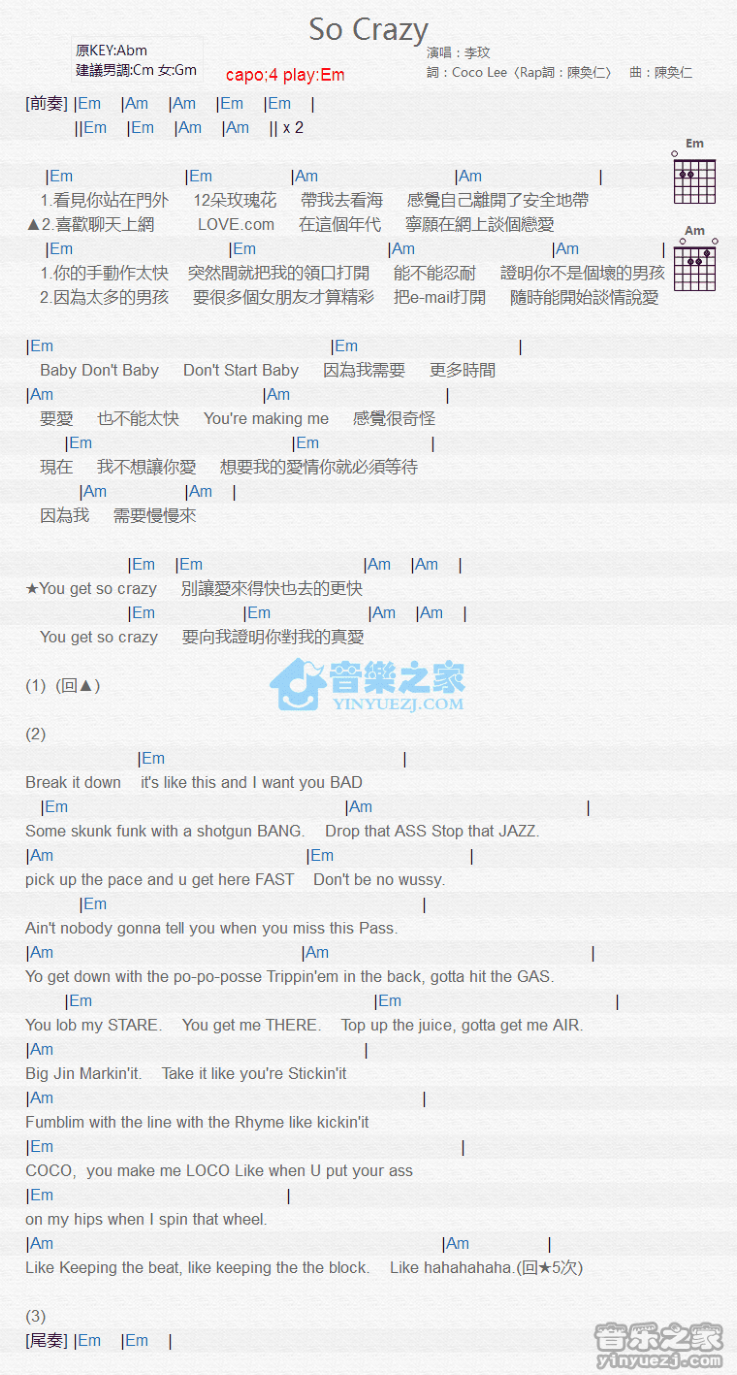 So Crazy吉他谱 - 李玟 - E调吉他弹唱谱 - 和弦谱