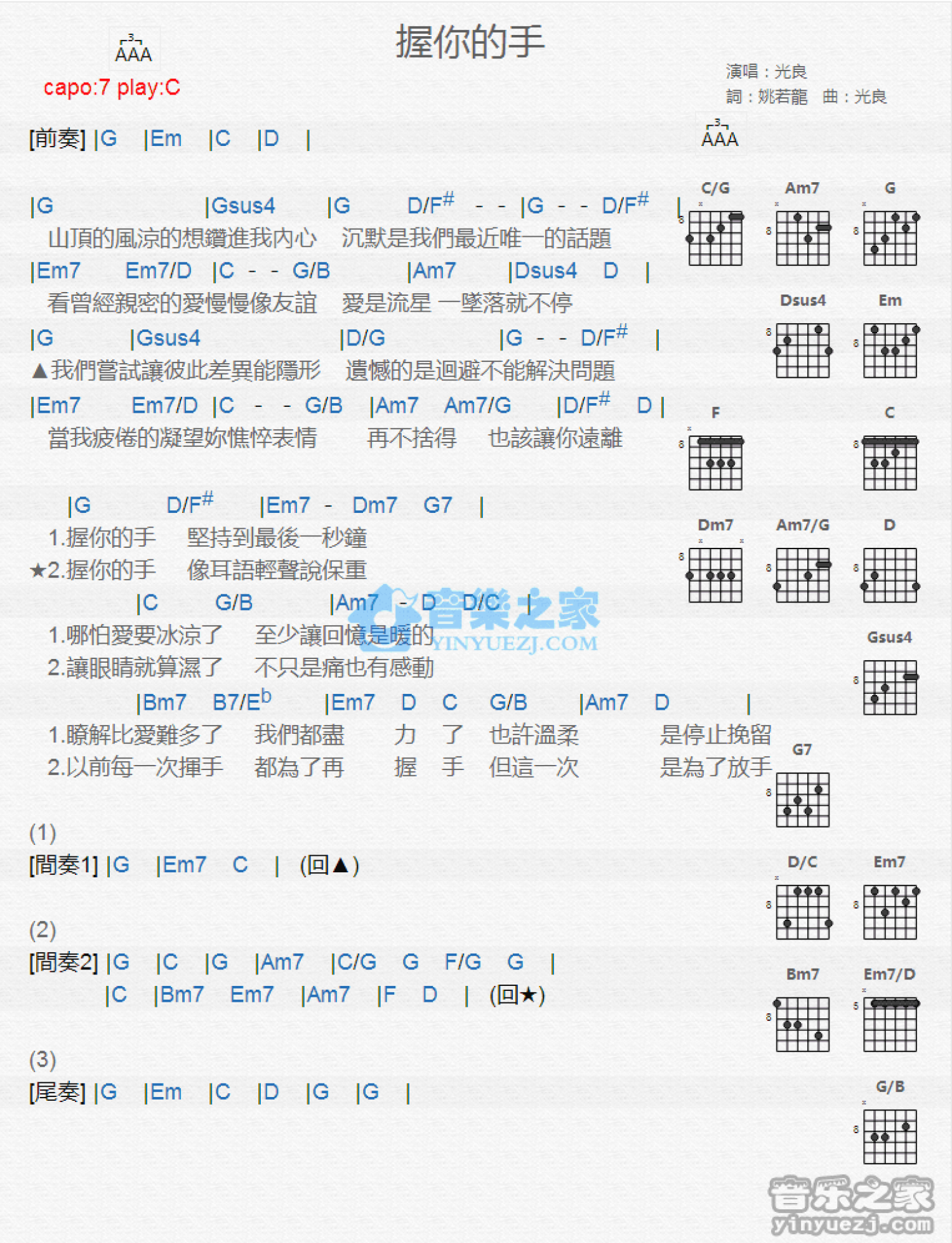 当前位置:琴谱网>吉他弹唱>握你的手