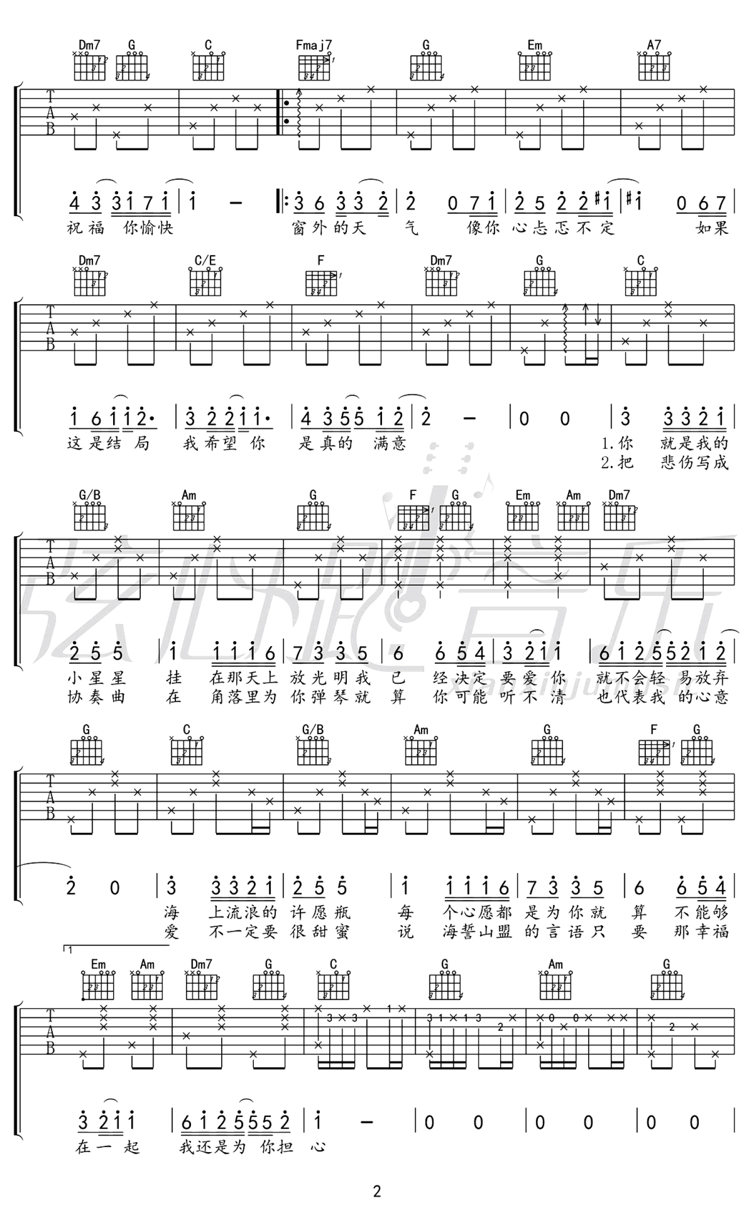 吉他弹唱C调来源:吴恒2782 浏览2018-03-19 13:34发布图谱共3页