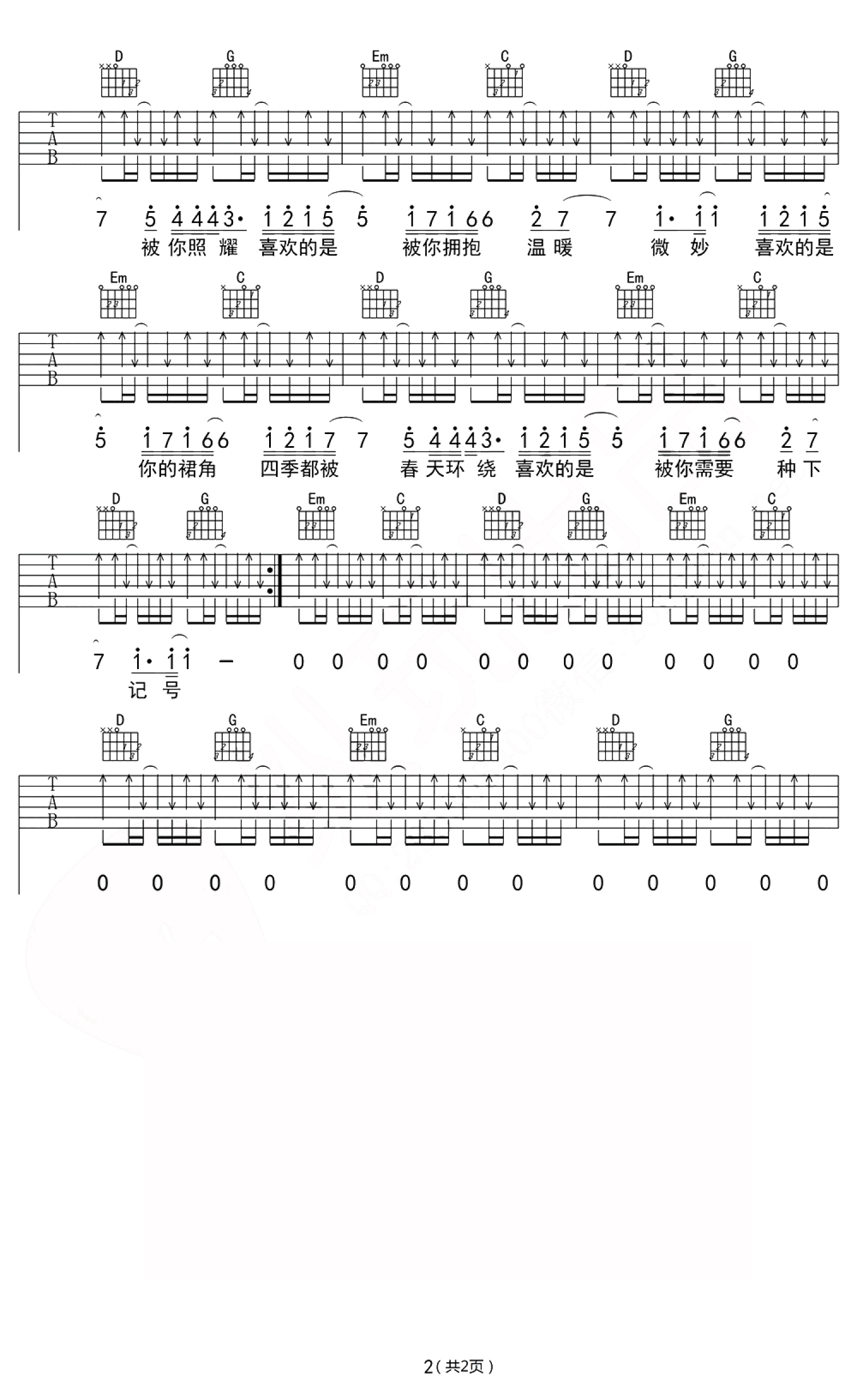 吉他弹唱G调来源:纵玩猫哥1151 浏览2018-03-19 13:34发布图谱共2页