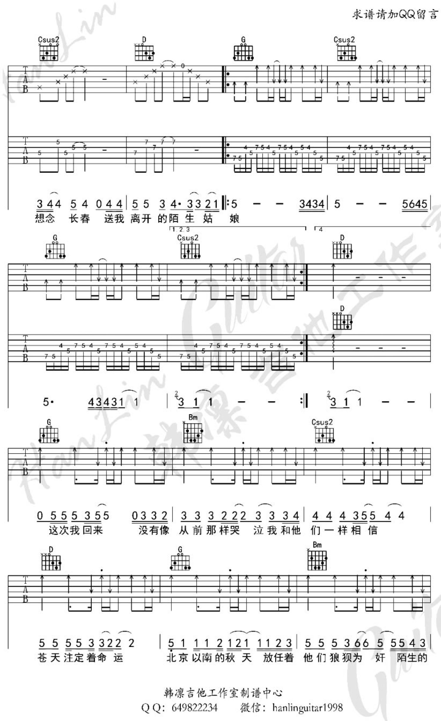 吉他弹唱G调来源:韩凛吉他--朱长春1393 浏览2018-03-19 13:34发布图谱共4页