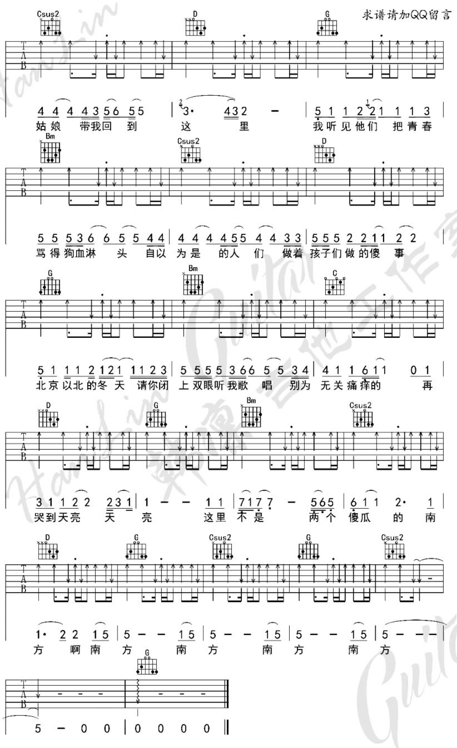 当前位置:琴谱网>吉他弹唱>北京以南