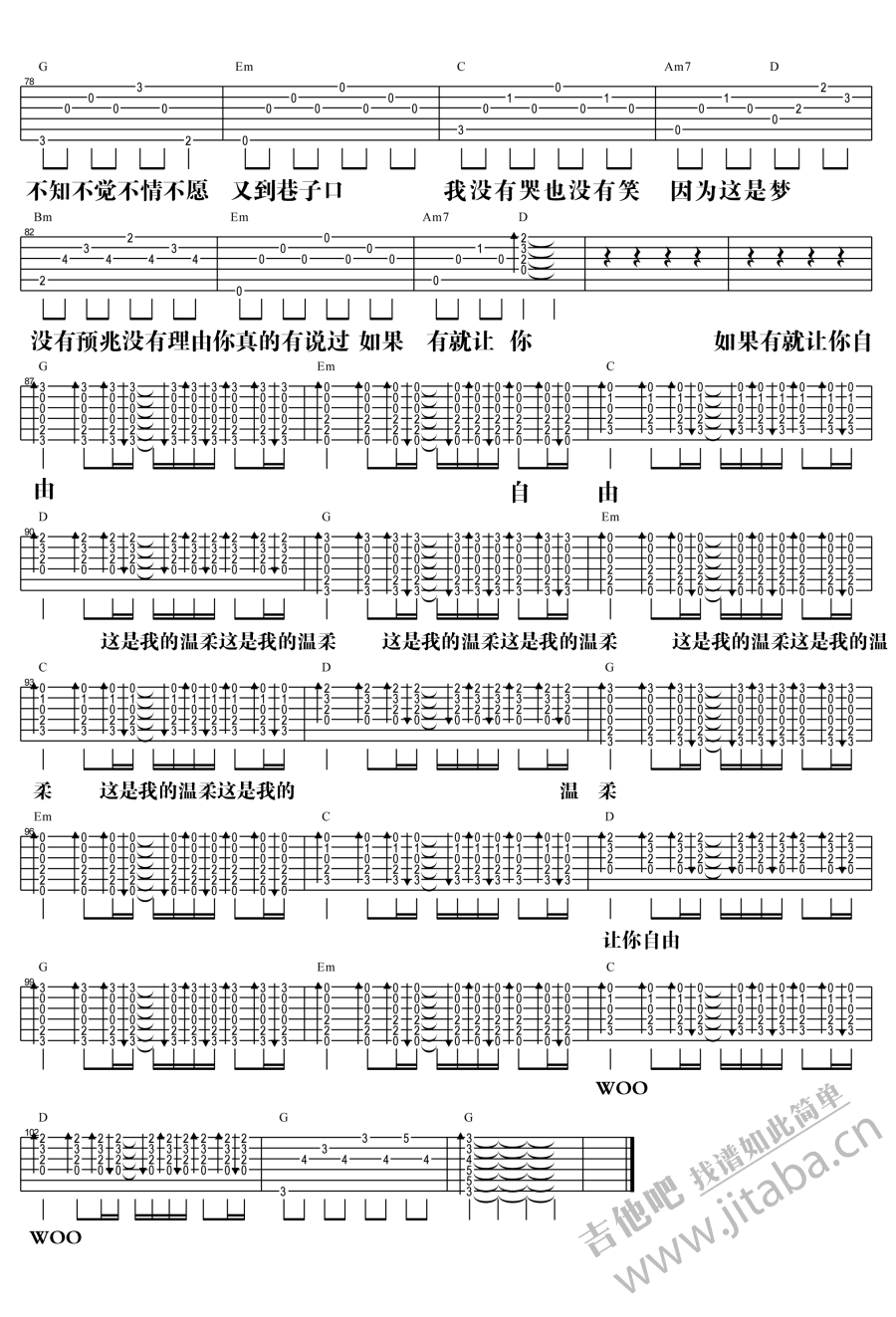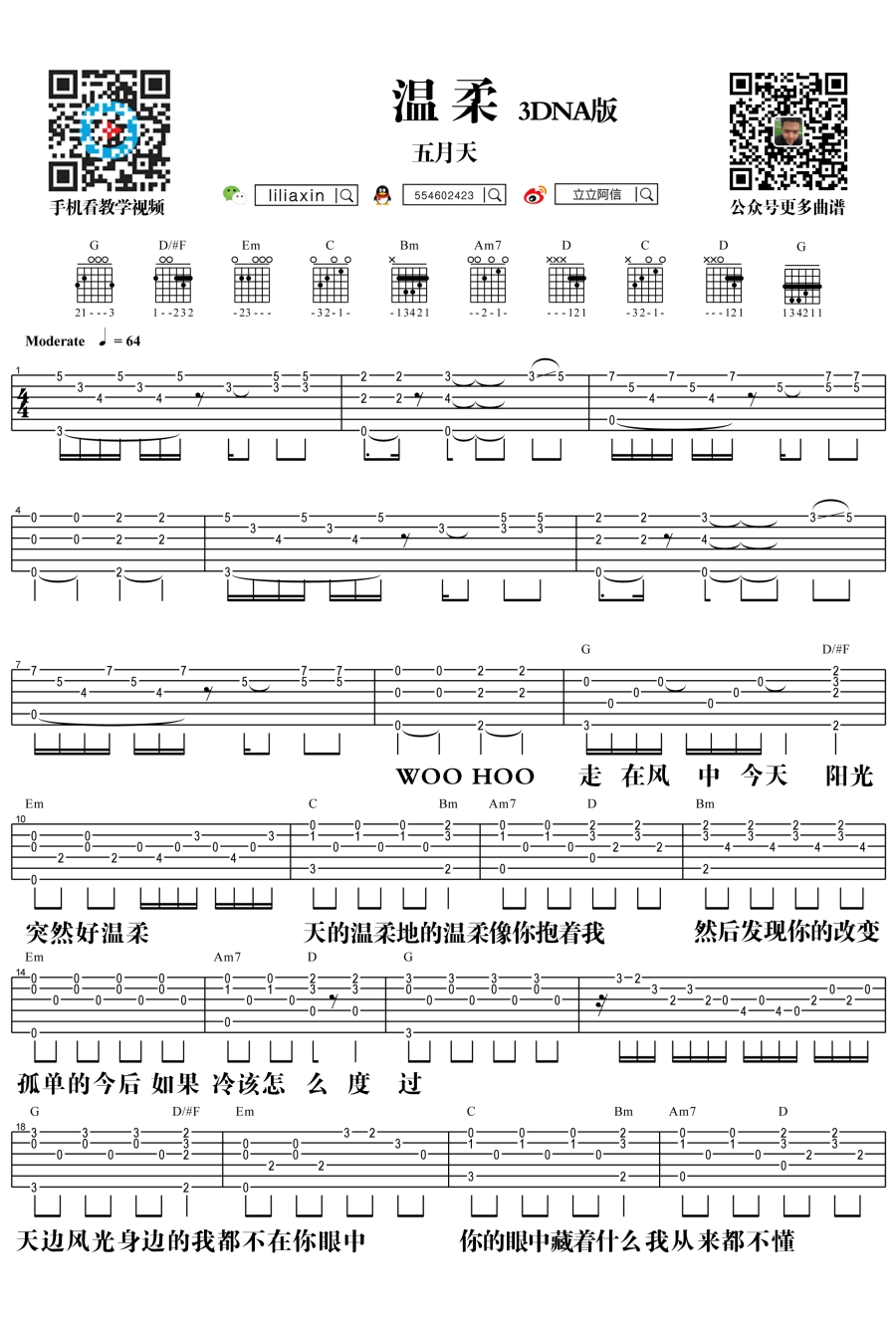 曲谱介绍: 五月天温柔吉他谱,3DNA还你自由版,温柔六线谱,五月天的一首经典老歌,岁月温柔了这首歌也温柔了我们。