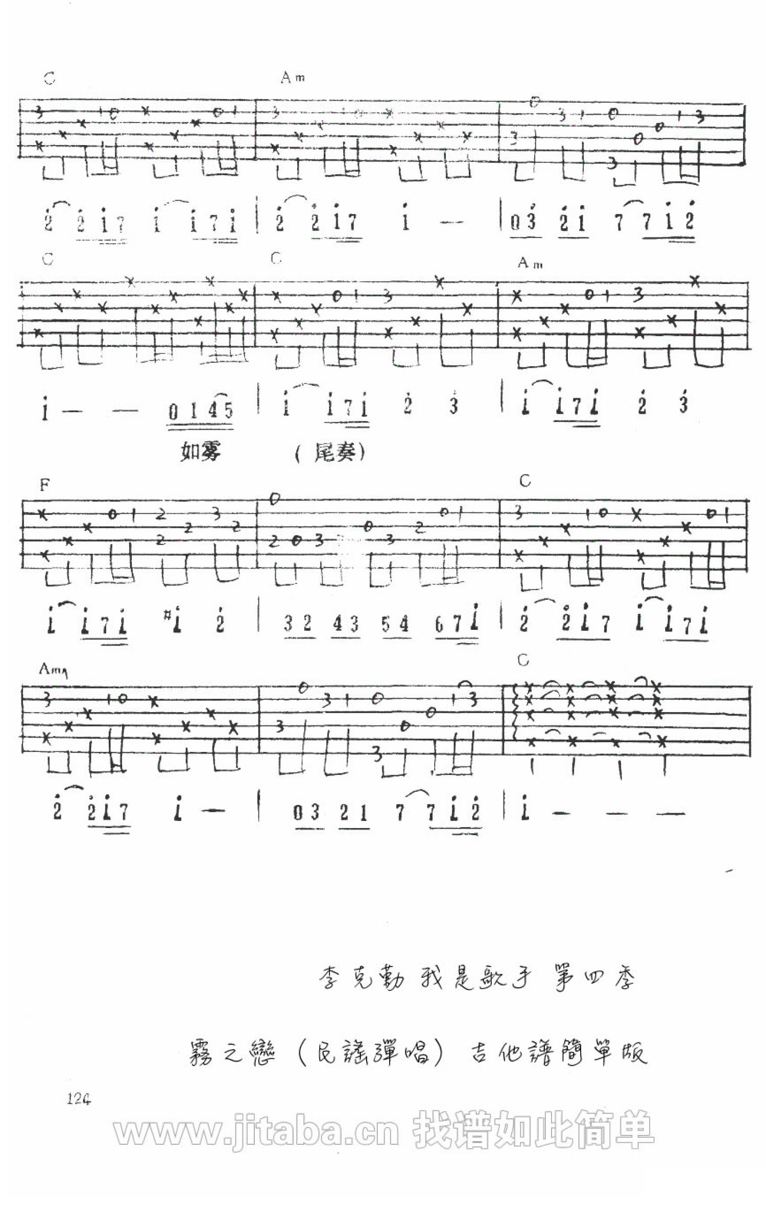 雾之恋吉他谱 - 李克勤 - 吉他弹唱谱