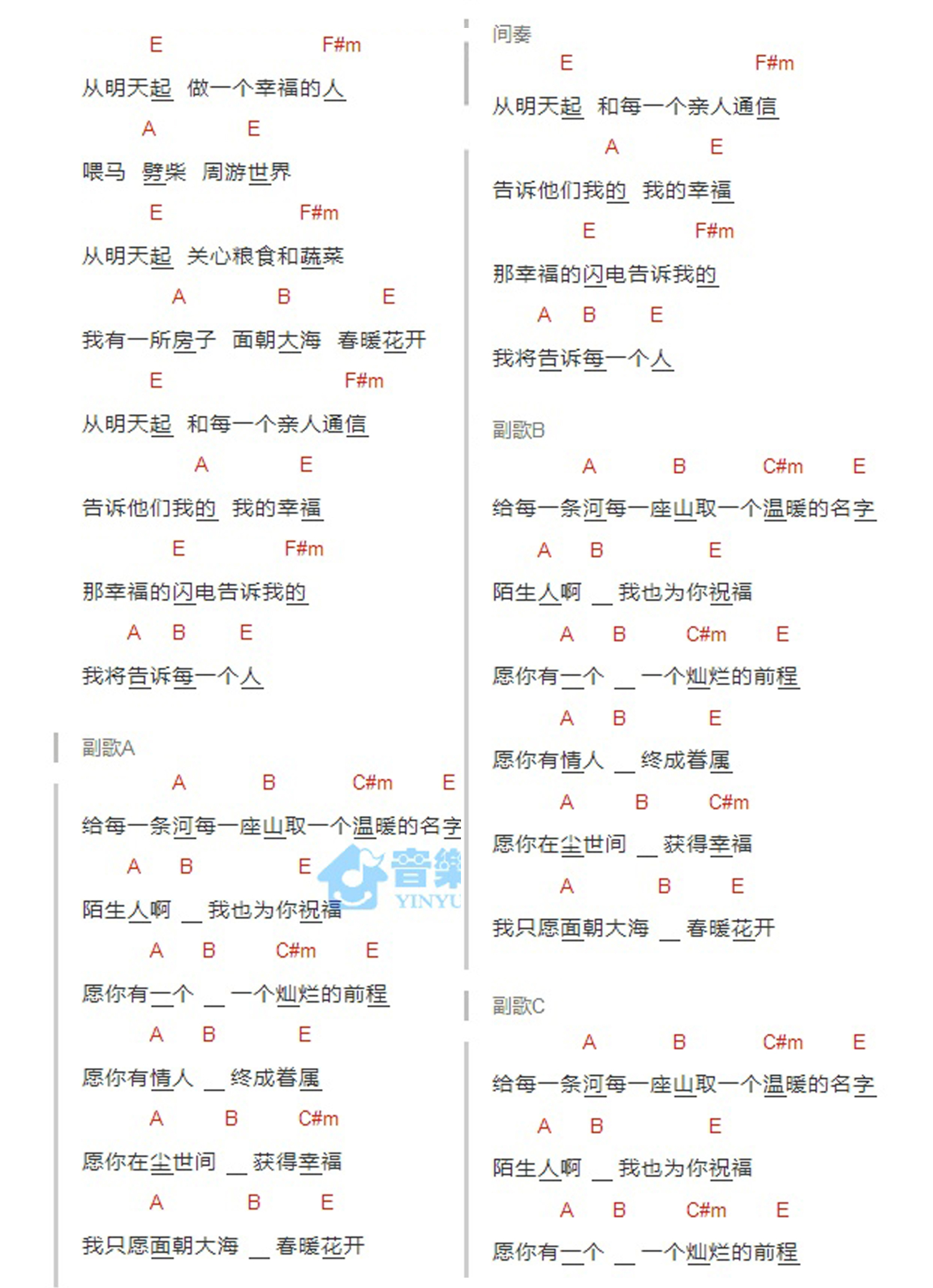 当前位置:琴谱网>吉他弹唱>面朝大海 春暖花开