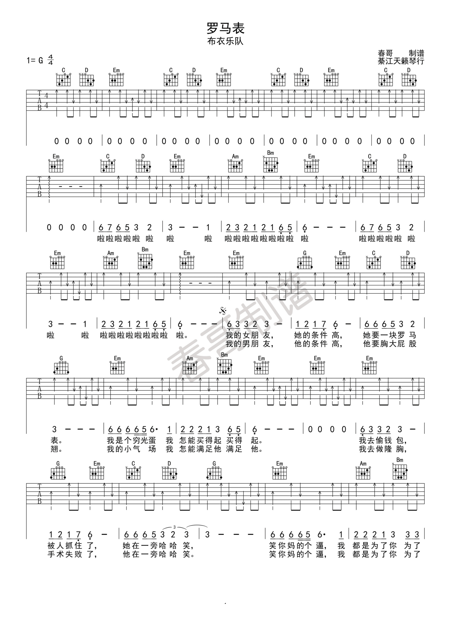 曲谱介绍: G调简单原版 布衣乐队《罗马表》吉他弹唱六线谱