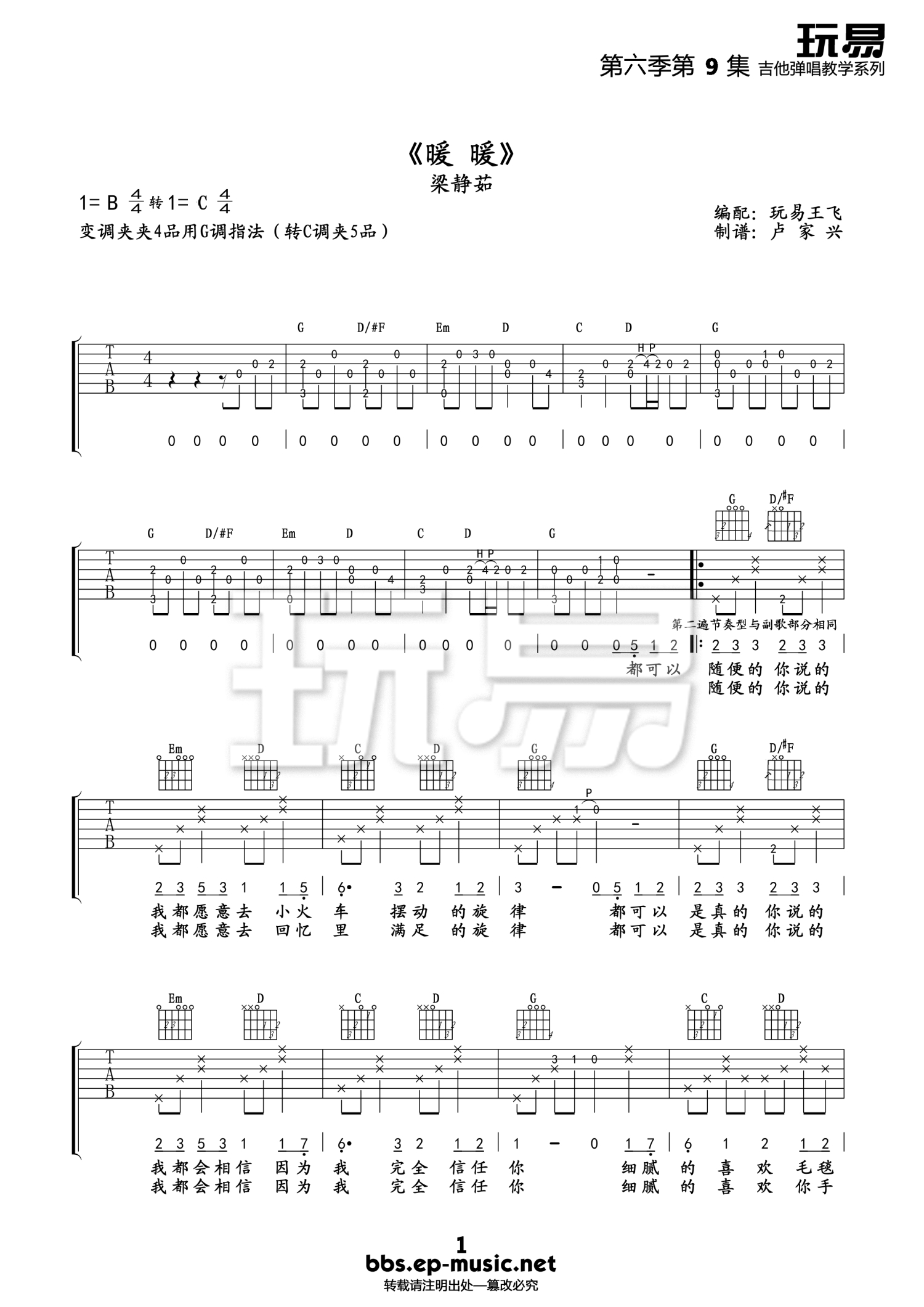 吉他弹唱C调来源:玩易吉他--卢家兴922 浏览2018-03-24 11:35发布图谱共3页