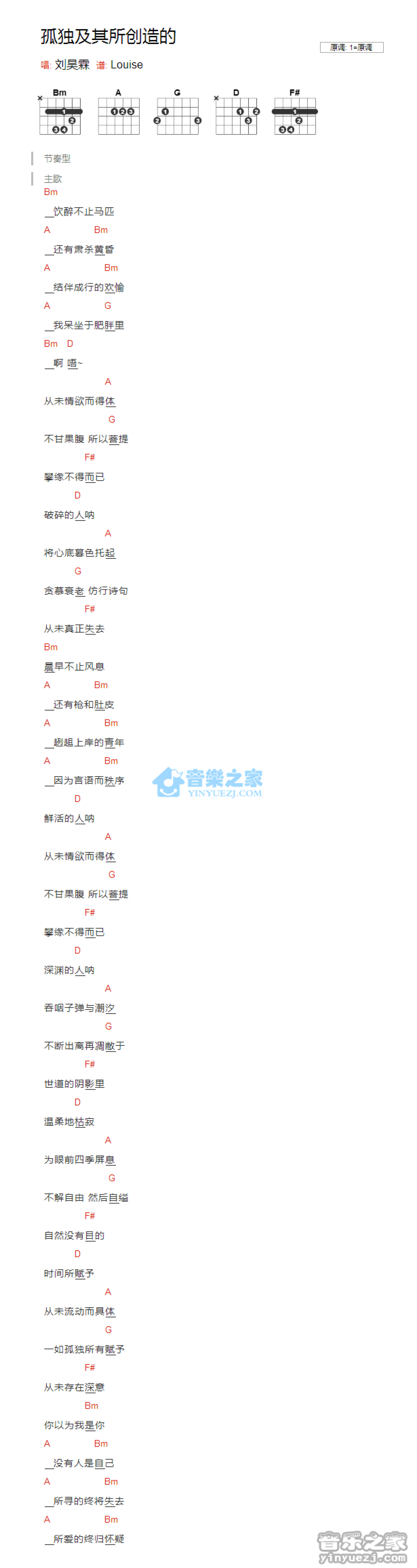 孤独及其所创造的吉他谱 - 刘昊霖 - 吉他弹唱谱 - 和弦谱