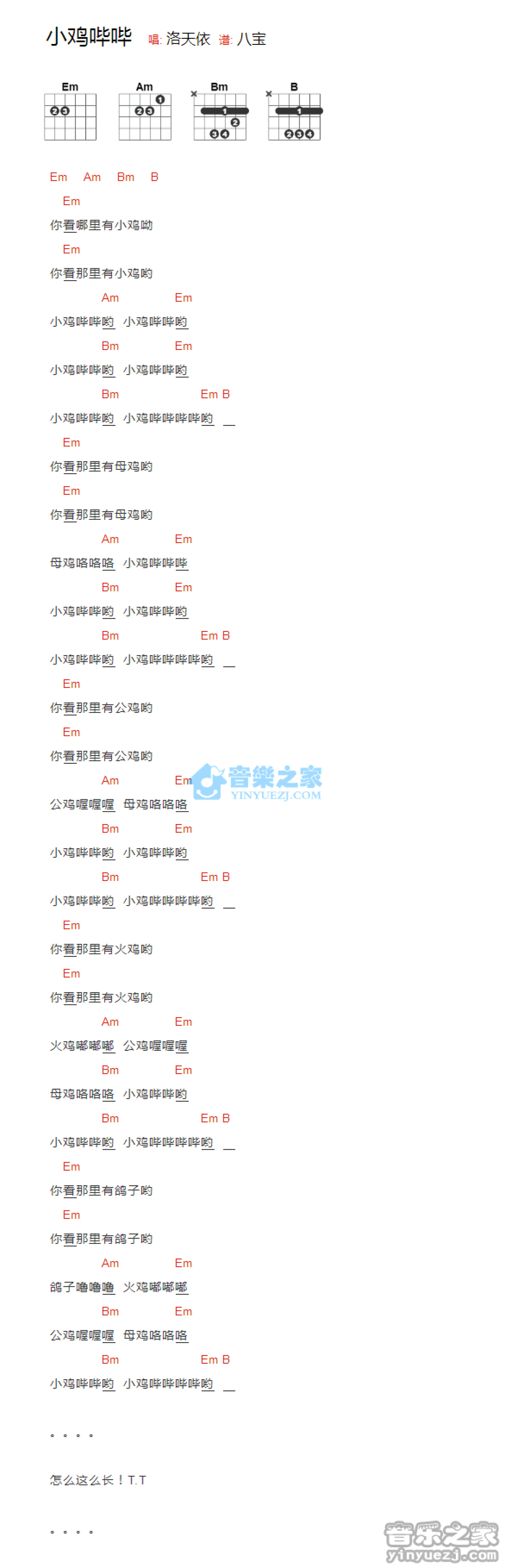 曲谱介绍: 洛天依《小鸡哔哔》吉他和弦弹唱谱