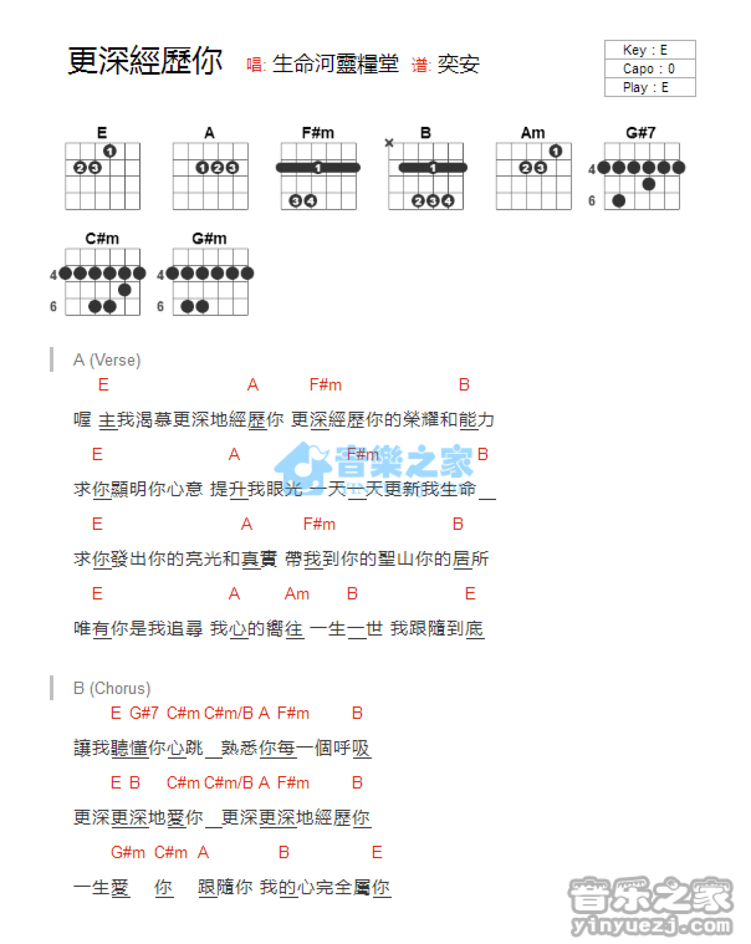 更深经历你吉他谱 - 生命河灵粮堂 - E调吉他弹唱谱 - 和弦谱