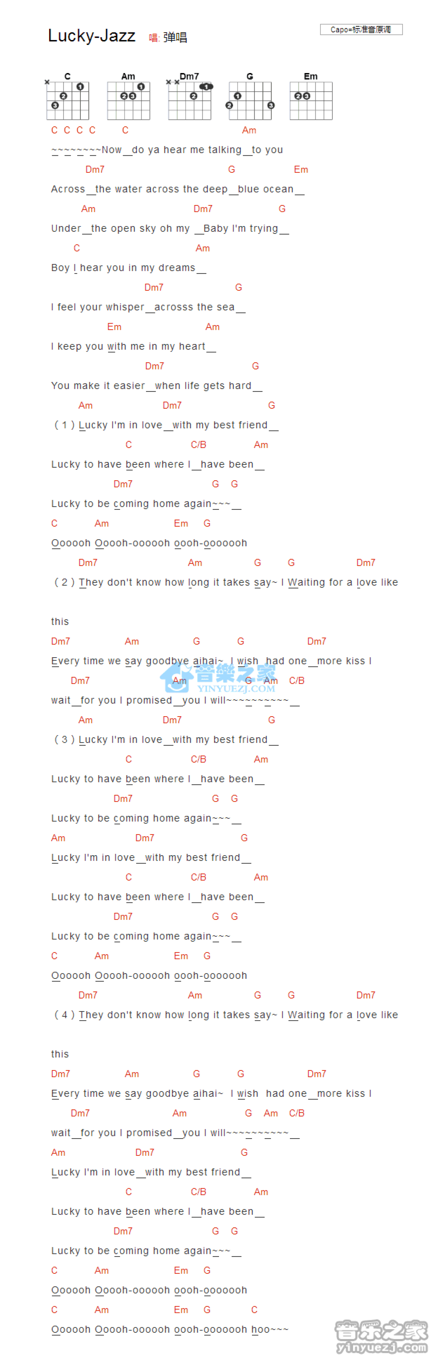 Lucky Jazz吉他谱 - C调吉他弹唱谱 - 和弦谱