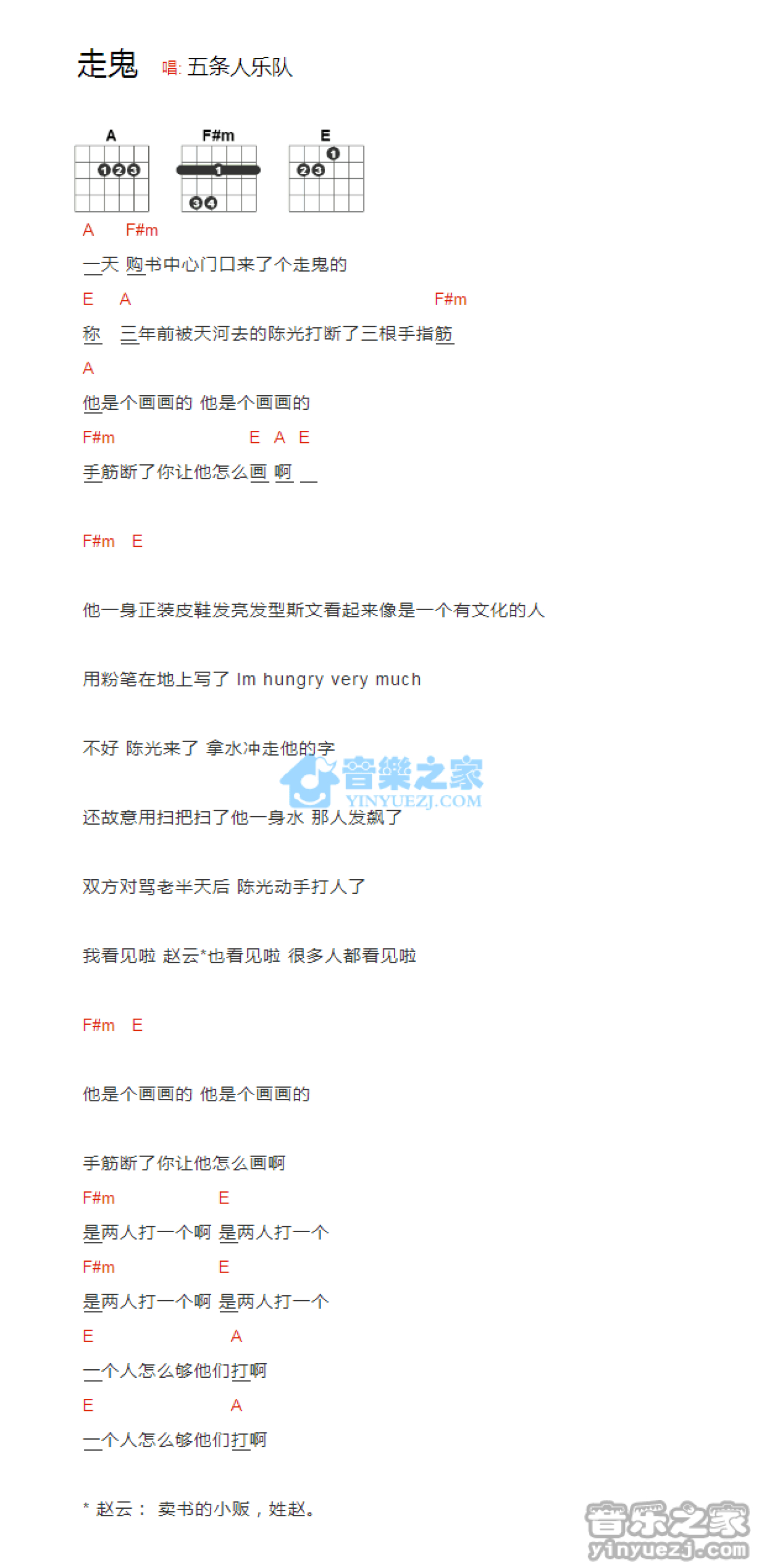 走鬼吉他谱 - 五条人 - 吉他弹唱谱 - 和弦谱