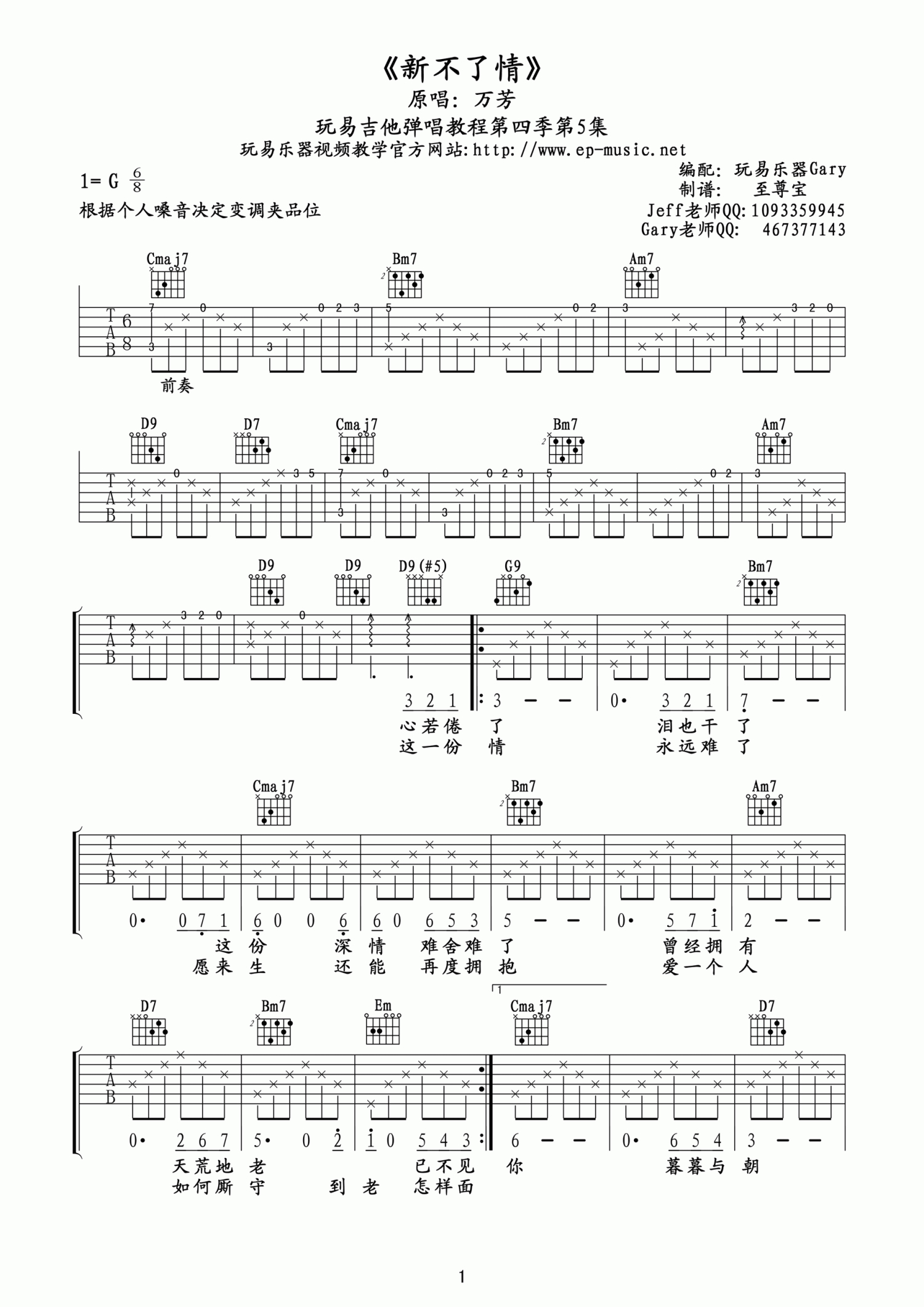当前位置:琴谱网>吉他弹唱>新不了情