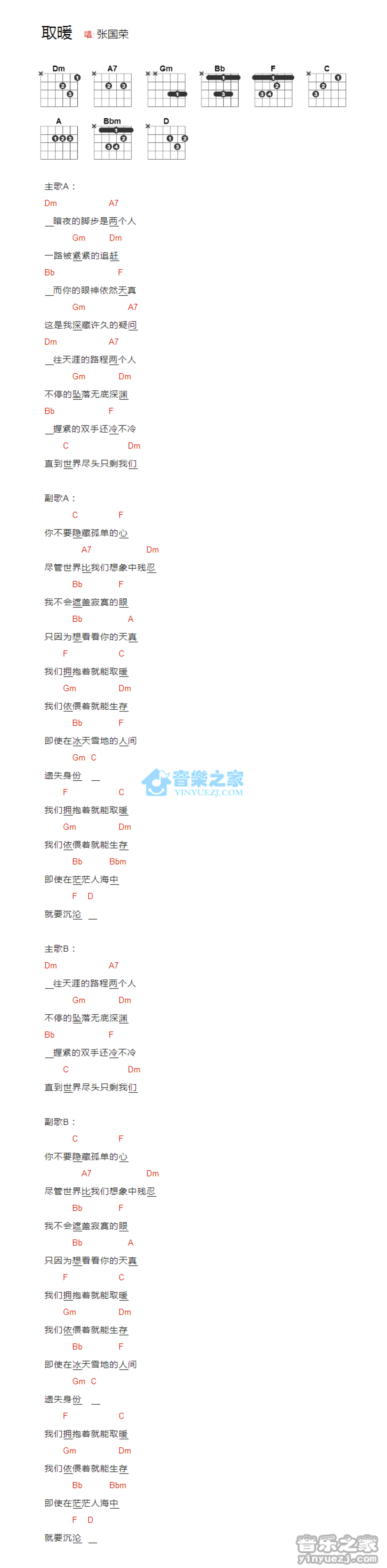 取暖吉他谱 - 张国荣 - 吉他弹唱谱 - 和弦谱