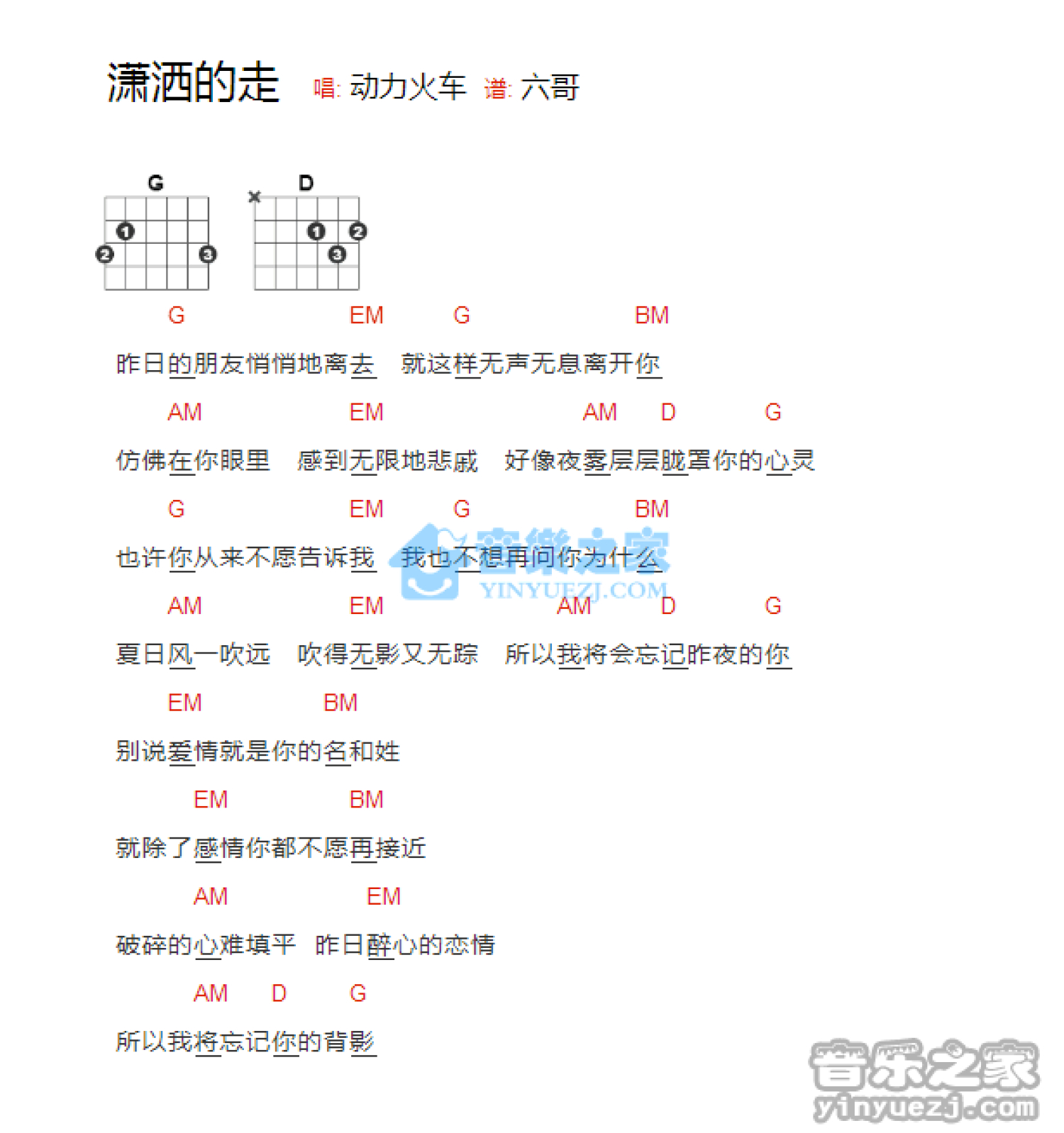 曲谱介绍: 《潇洒的走》吉他和弦弹唱谱