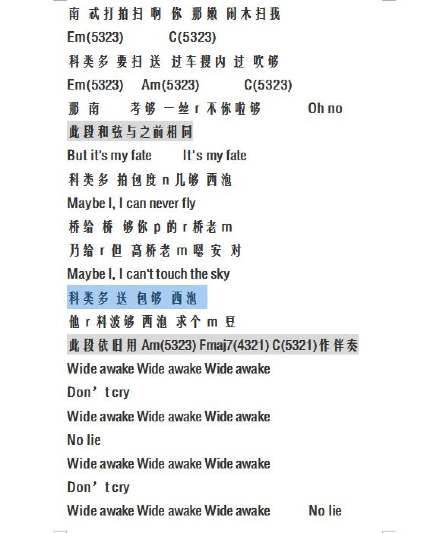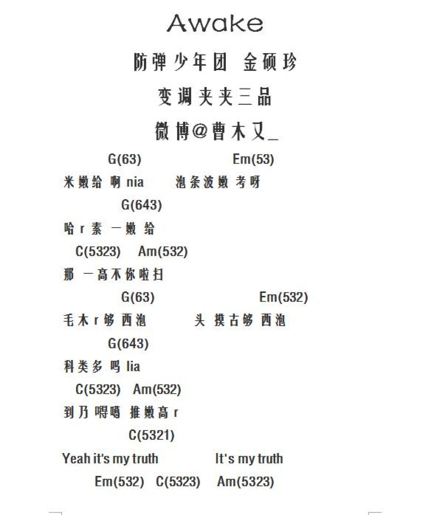 曲谱介绍: 防弹少年团《Awake》吉他和弦弹唱谱