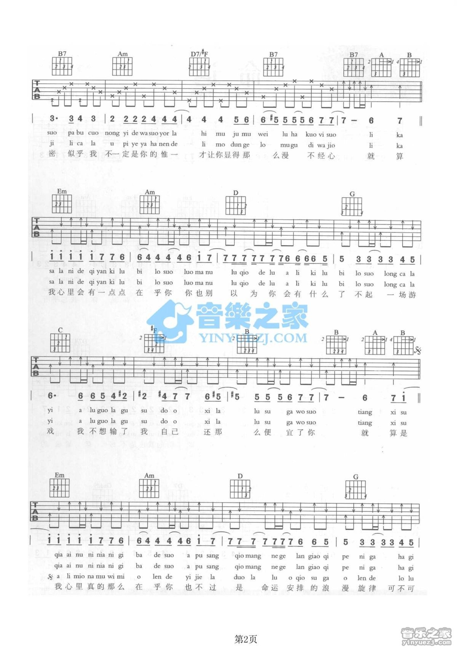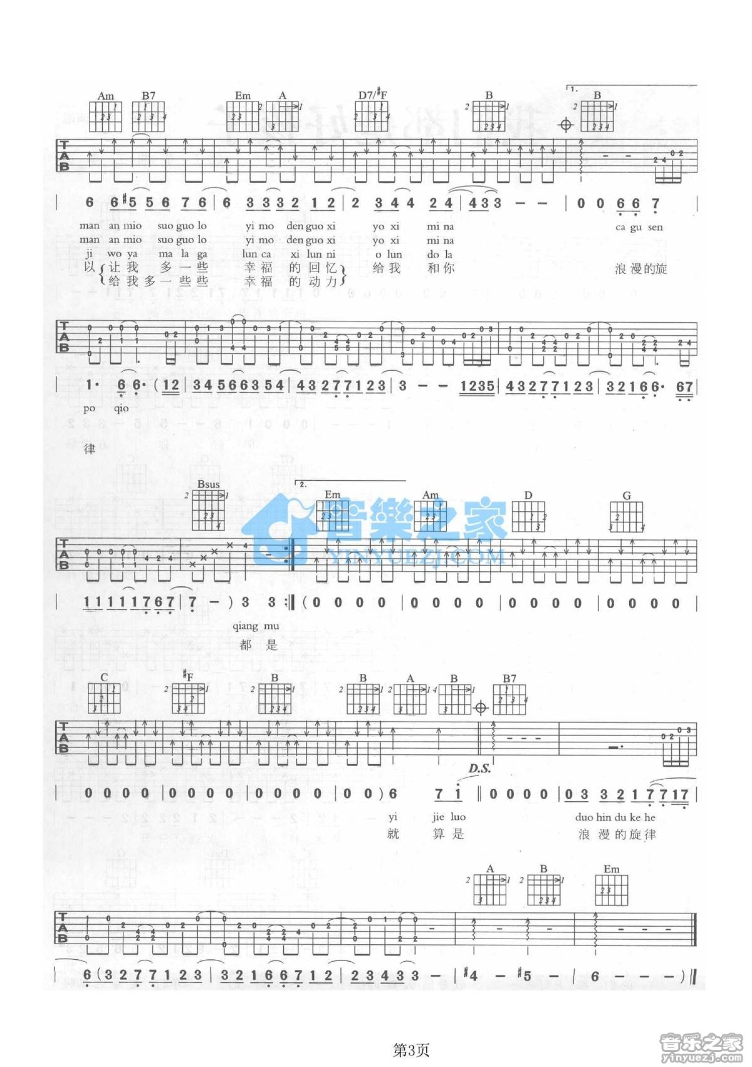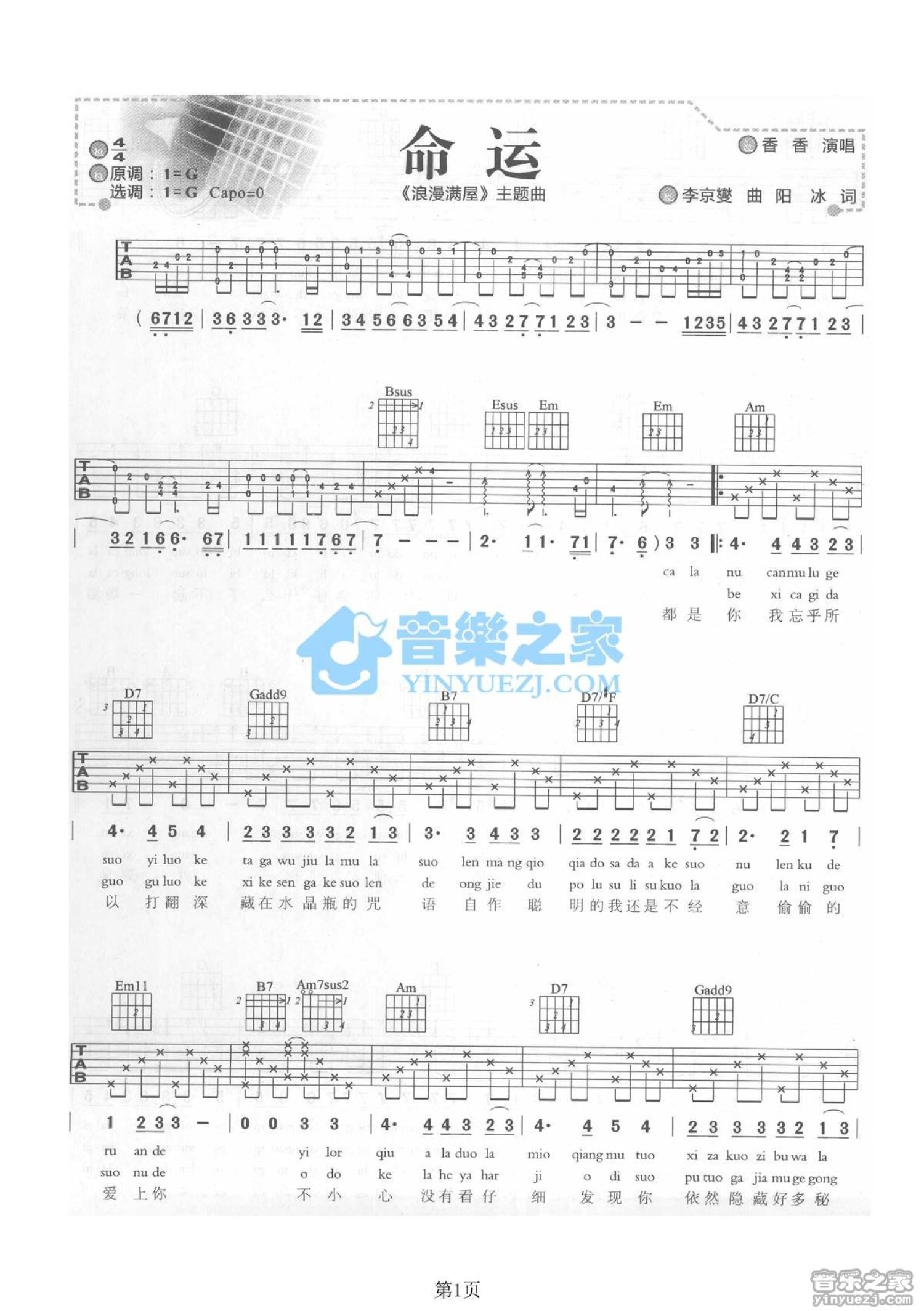 曲谱介绍: G调版 浪漫满屋主题曲《命运》吉他弹唱六线谱