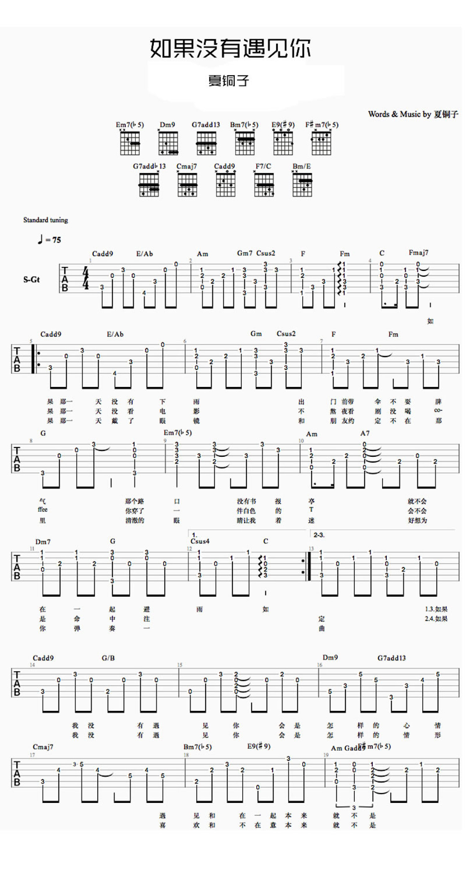 如果没有遇见你吉他谱 - 夏铜子 - 吉他弹唱谱