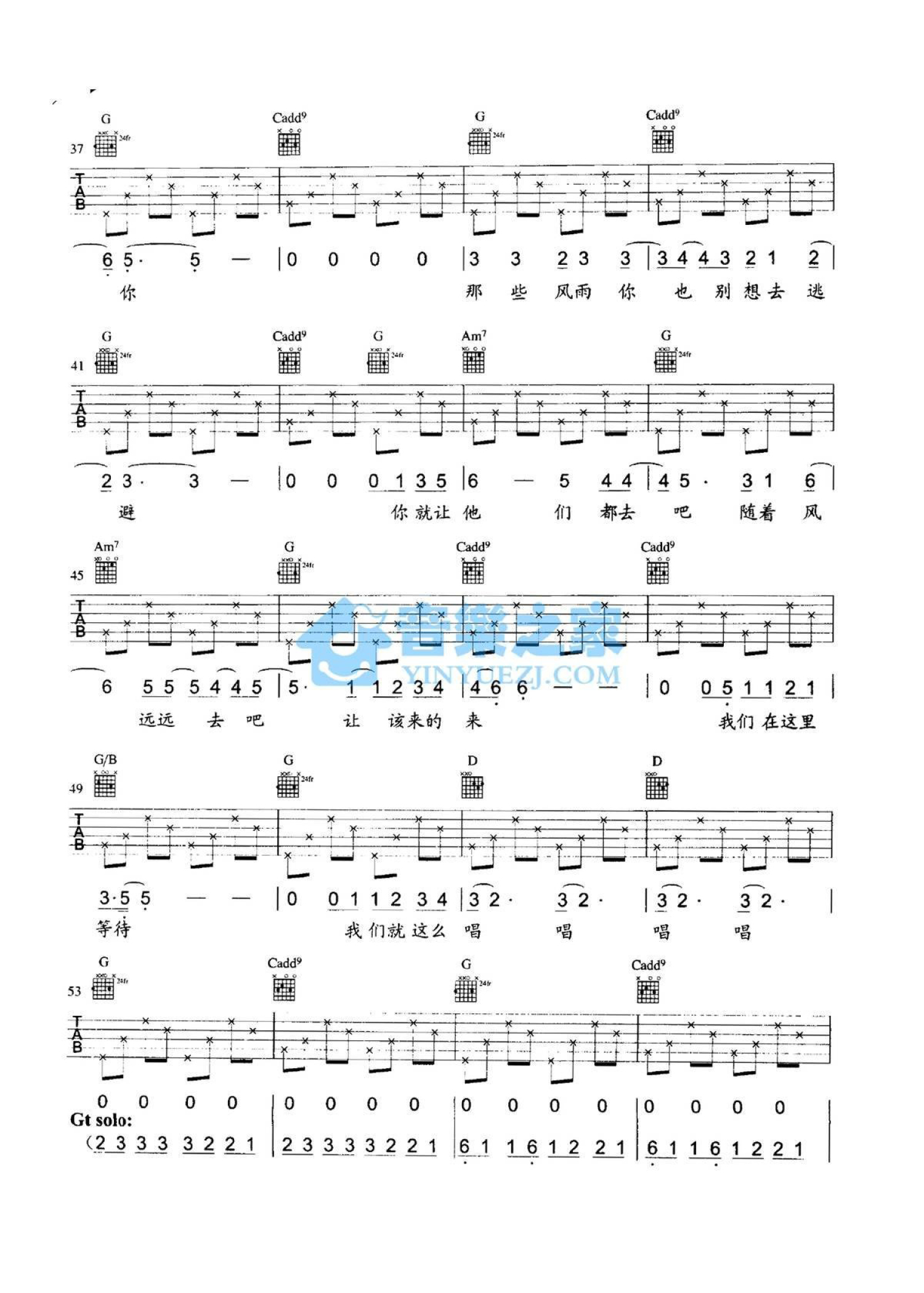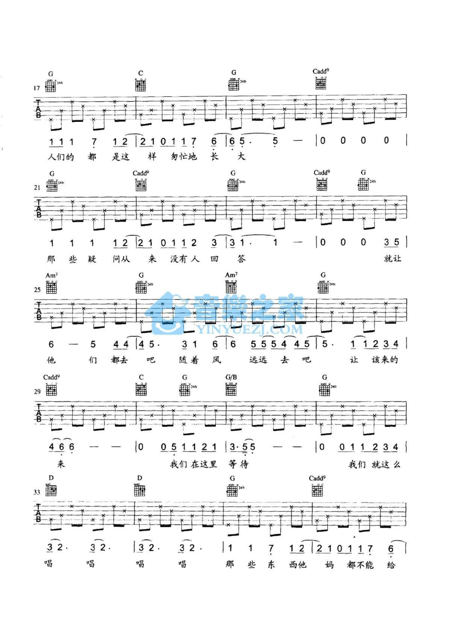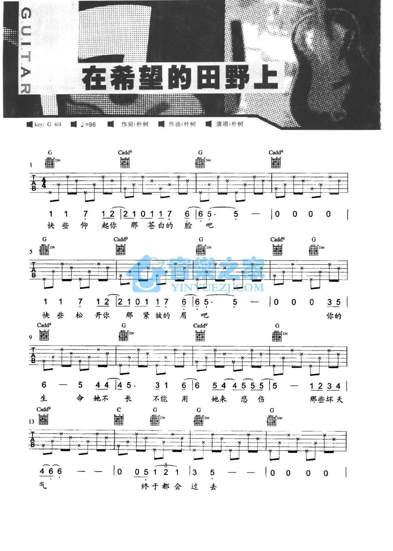 曲谱介绍: G调版 朴树《在希望的田野上》吉他弹唱六线谱