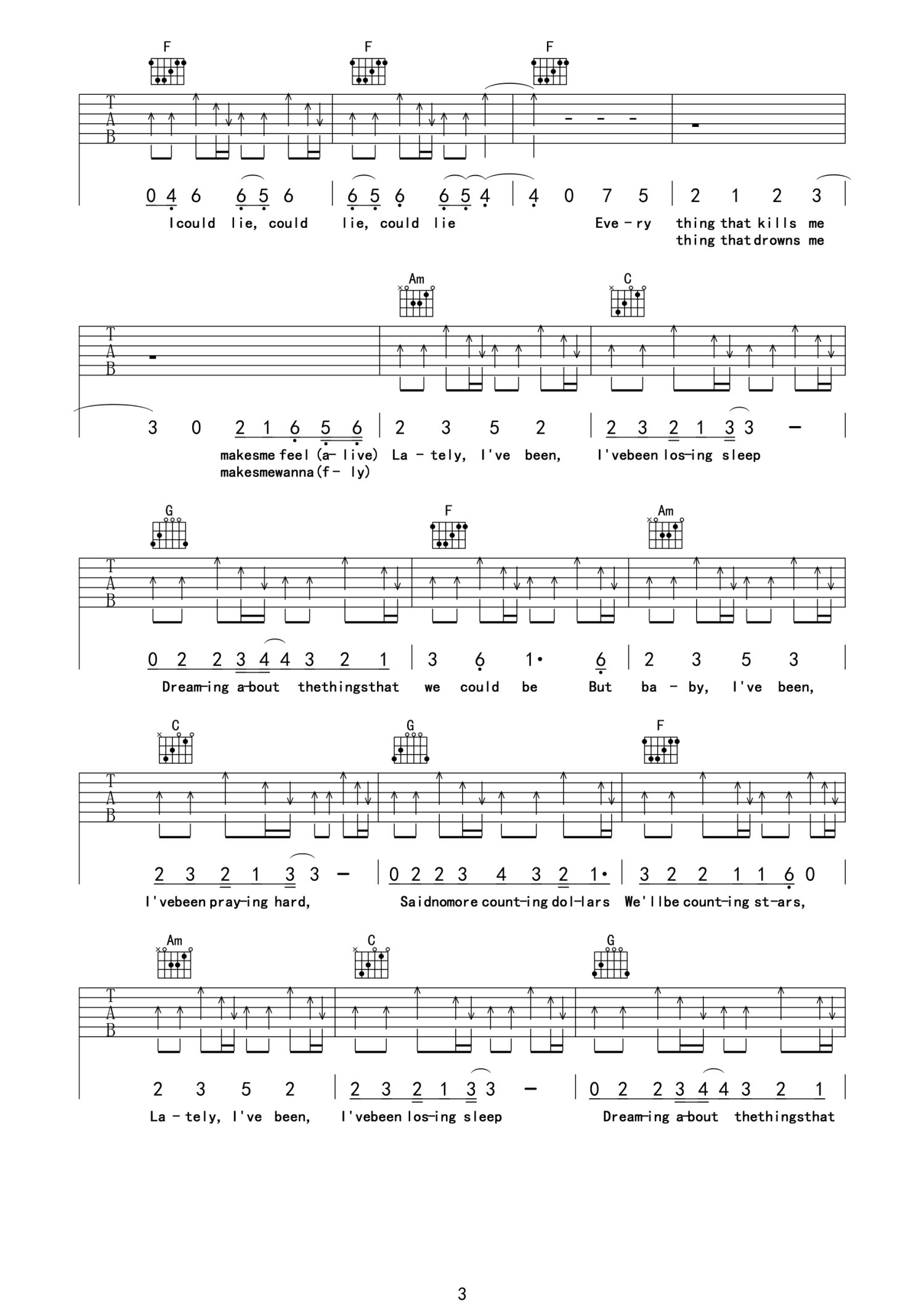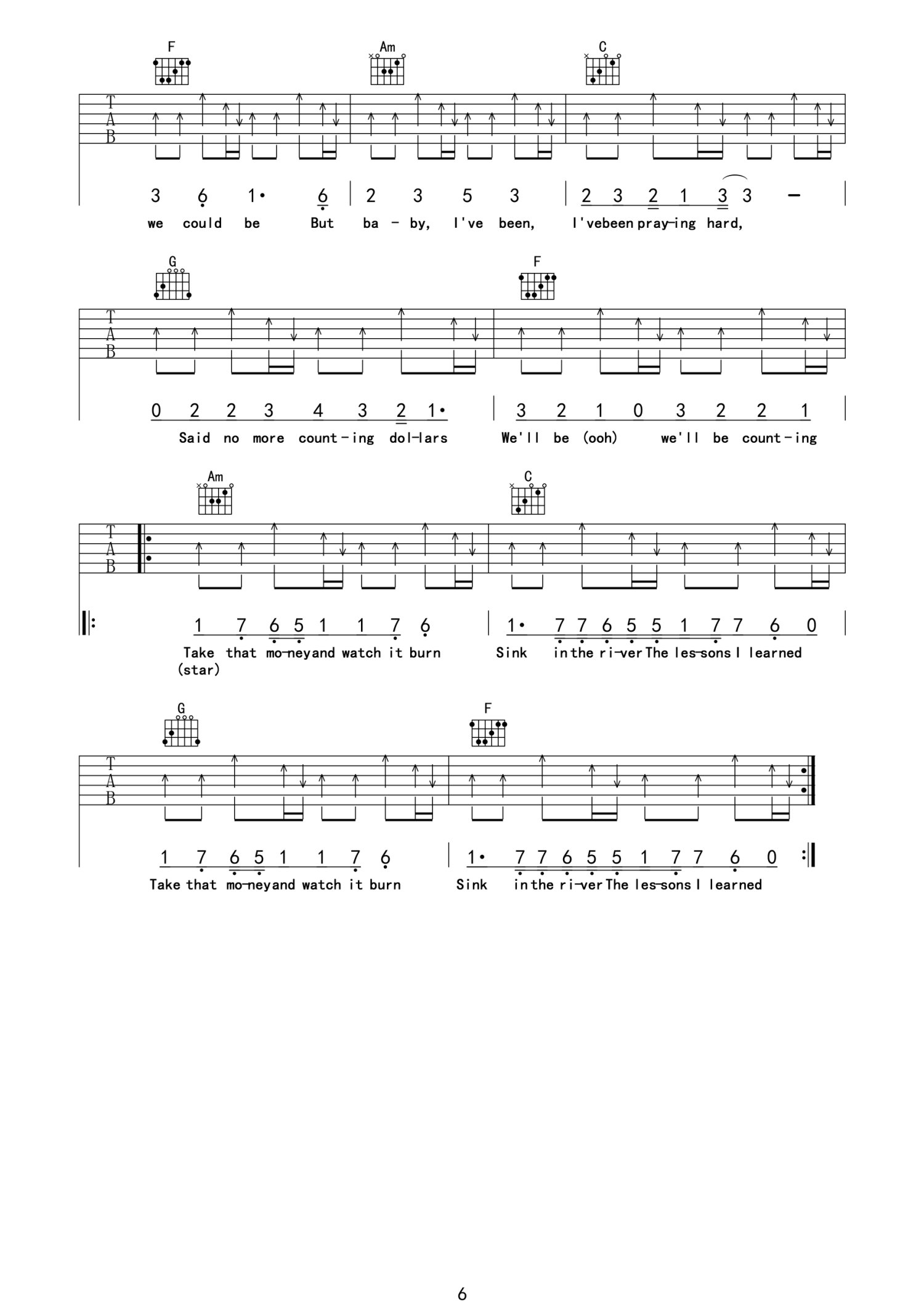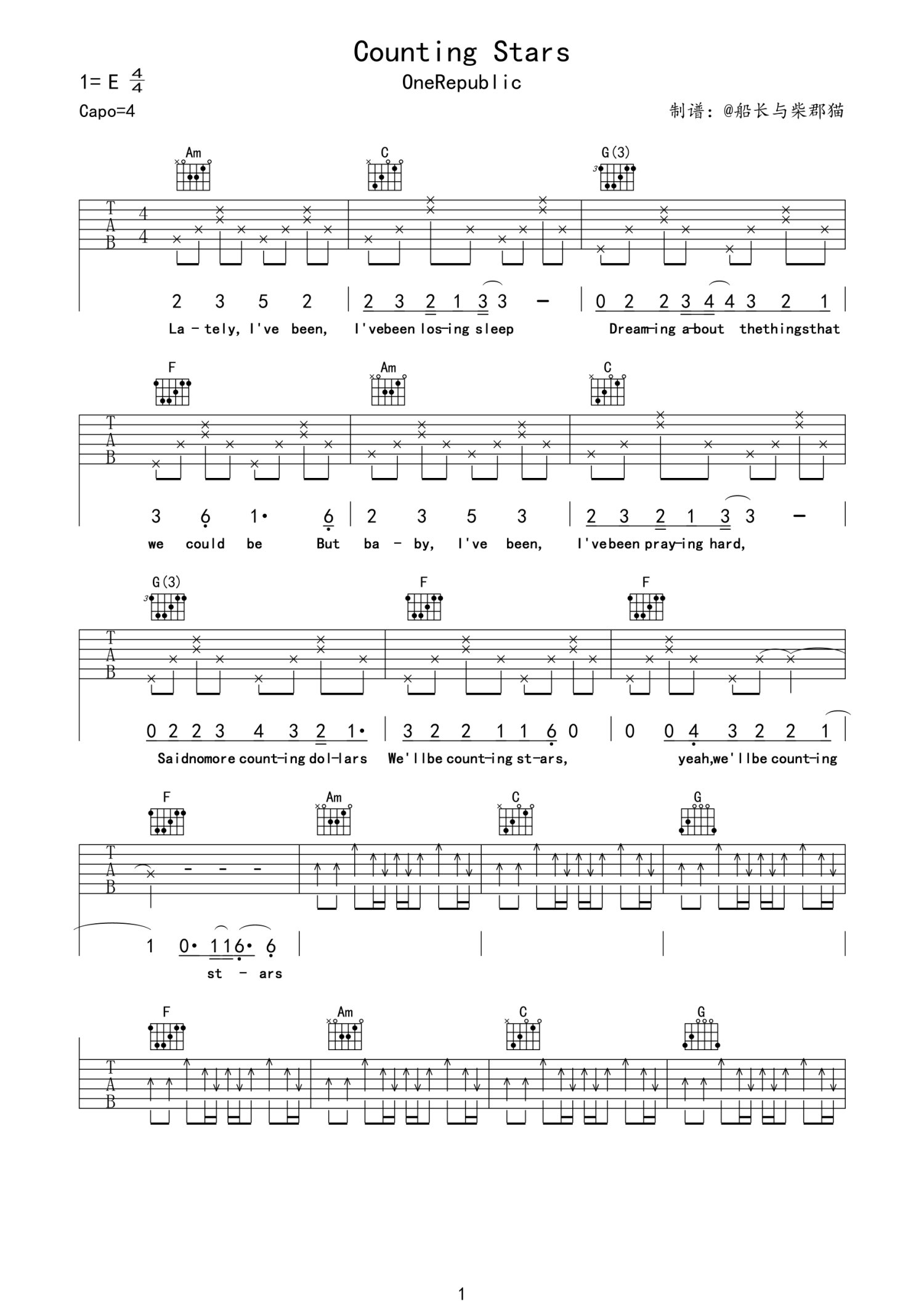 曲谱介绍: E调版《CountingStars》吉他弹唱六线谱
