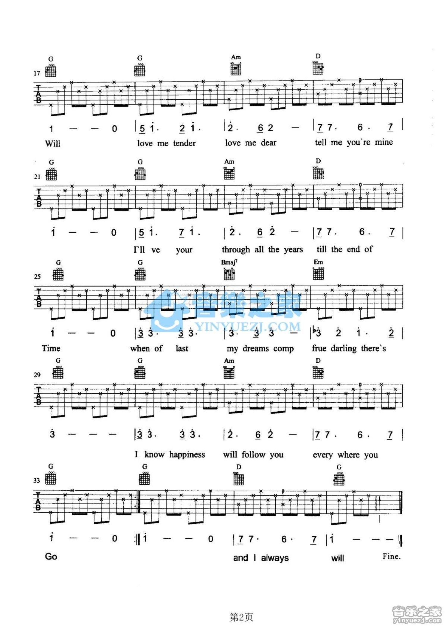 Love Me Tender吉他谱 - 艾尔维斯 - G调吉他弹唱谱