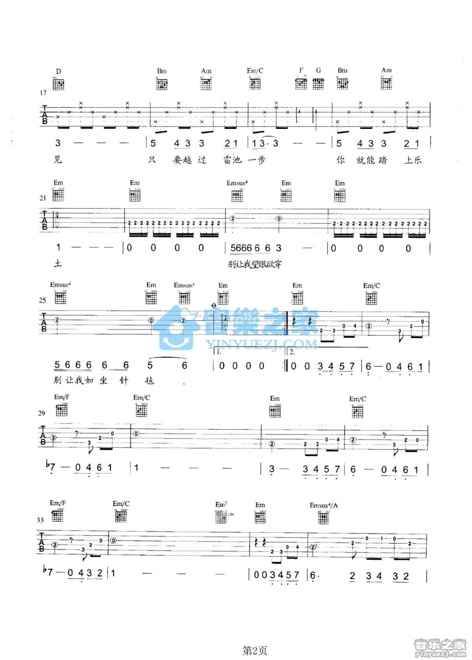 当前位置:琴谱网>吉他弹唱>雷池B