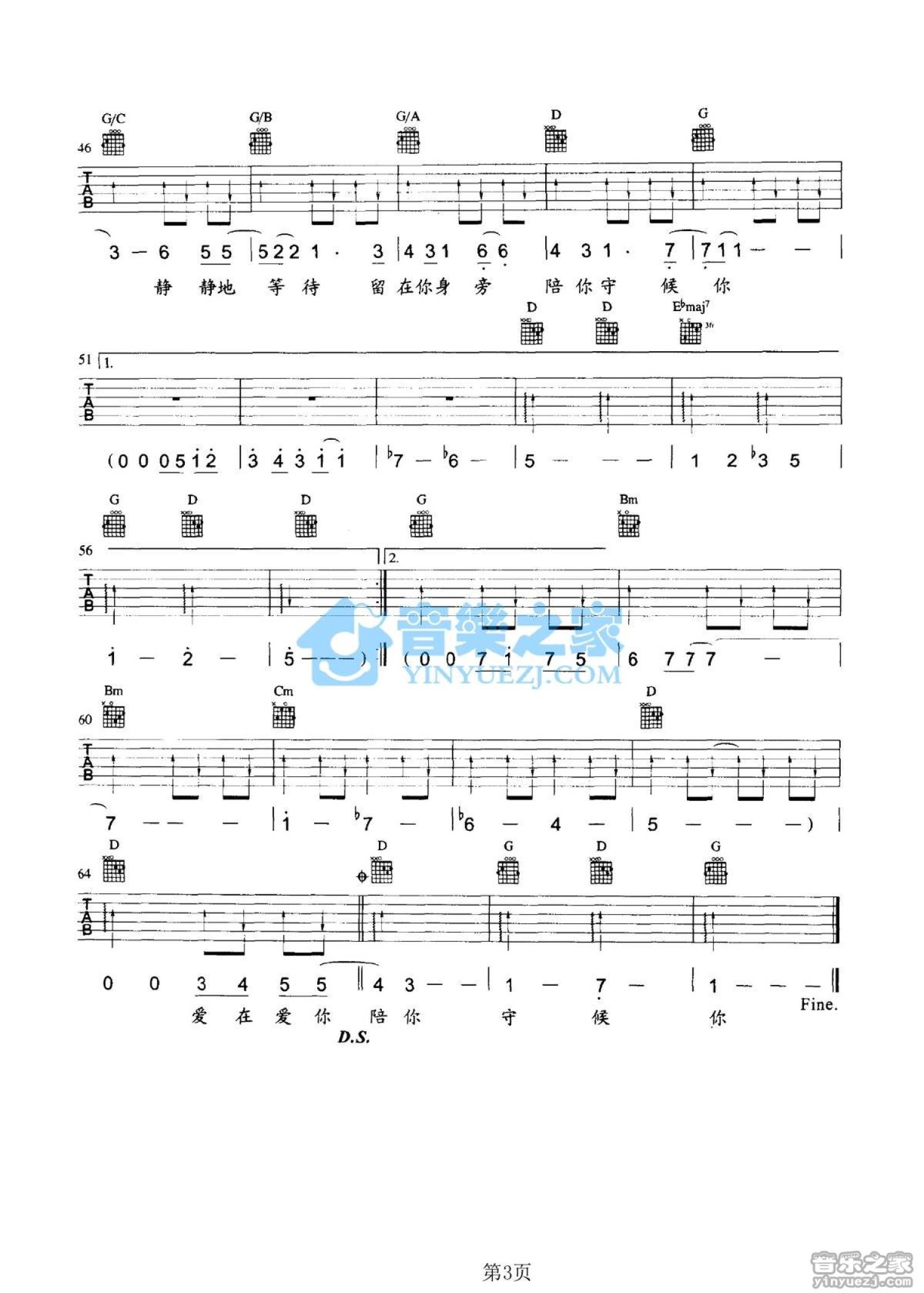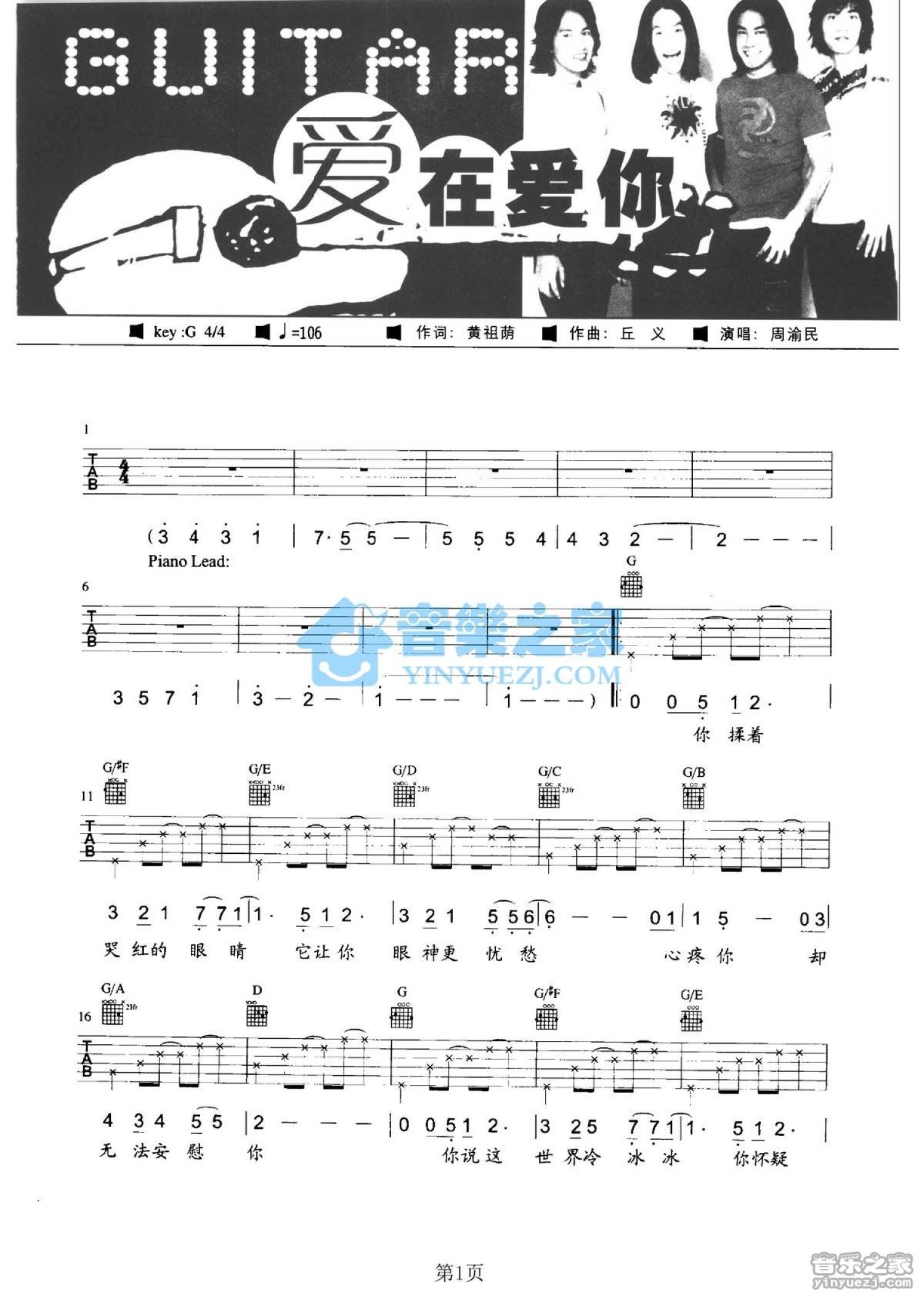 曲谱介绍: G调版 周渝民《爱在爱你》吉他弹唱六线谱