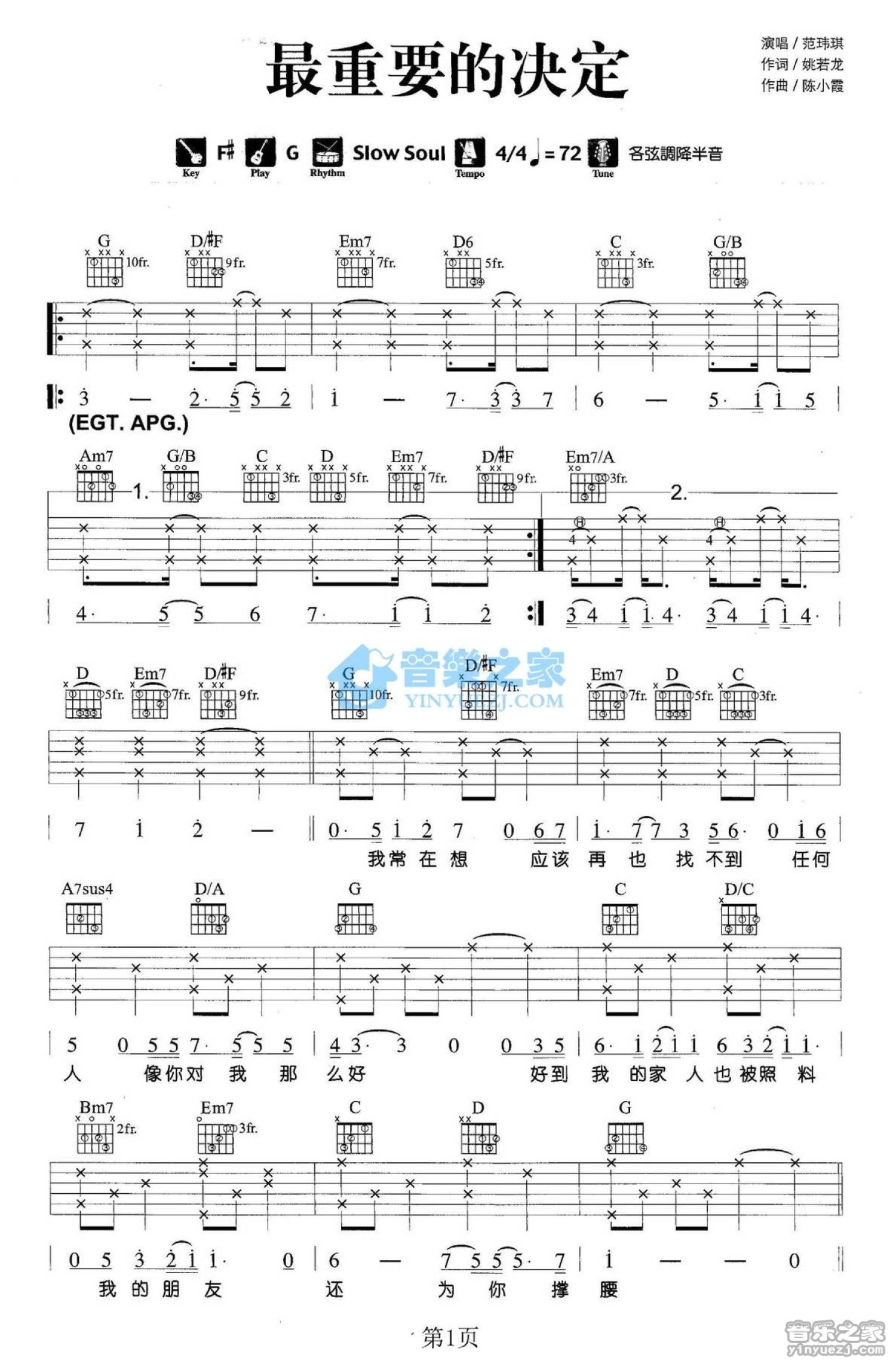 当前位置:琴谱网>吉他弹唱>最重要的决定